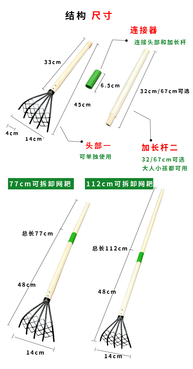 国产通用 多功能不锈钢网耙 可拆卸 112cm 1个