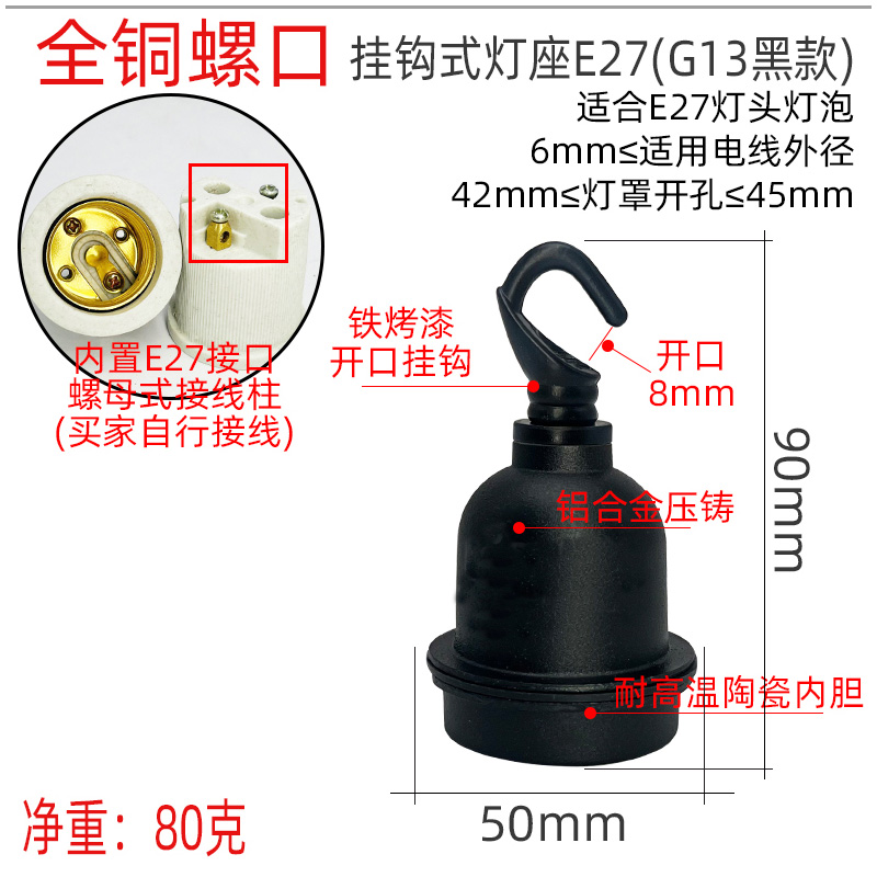 挂钩式灯座E27(G13黑款)