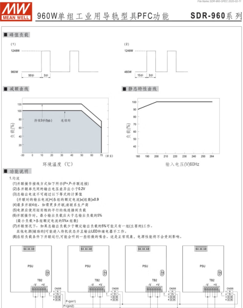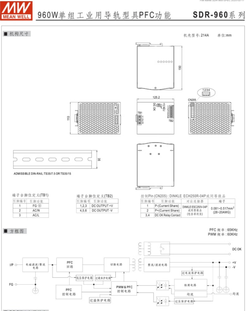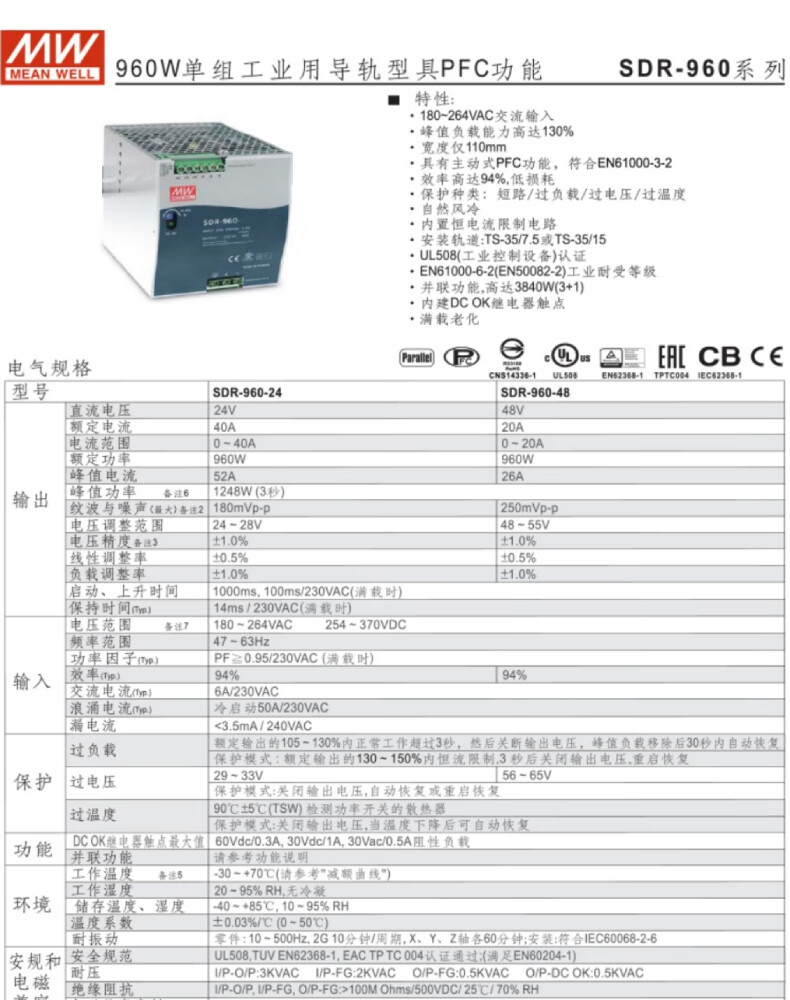 台湾明纬 单组工业用导轨型有PFC功能电源 SDR-960-24 960W 1台