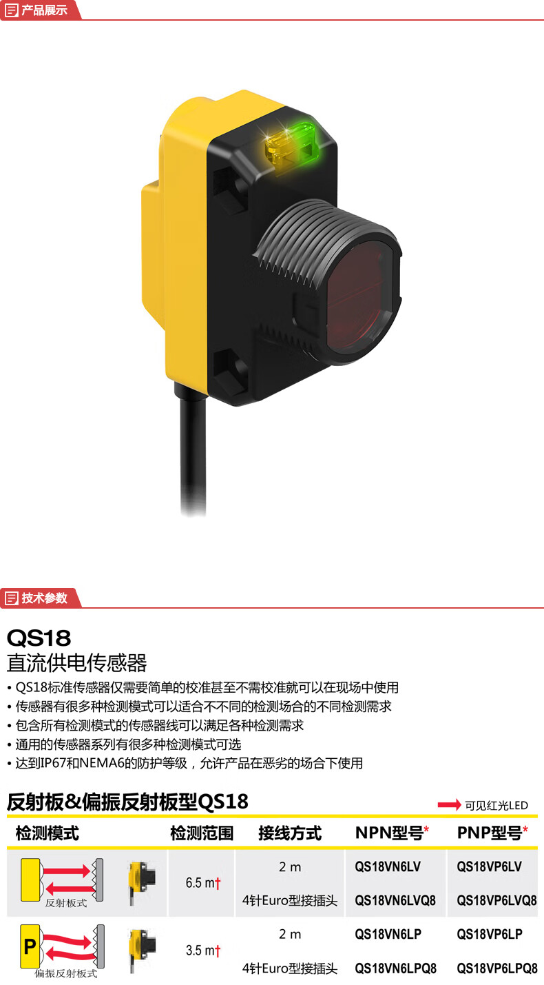 美国邦纳 光电传感器 QS18VN6LLP 激光极地复古 1个