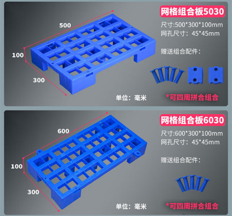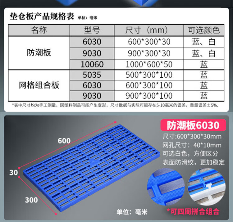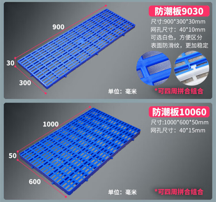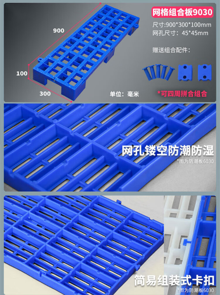海斯迪克 组合式防潮垫仓板 KC61-6 蓝色 900*300*30mm 1件