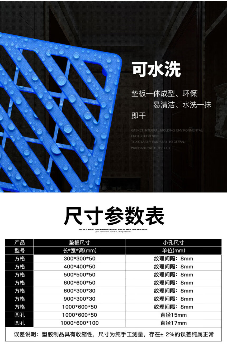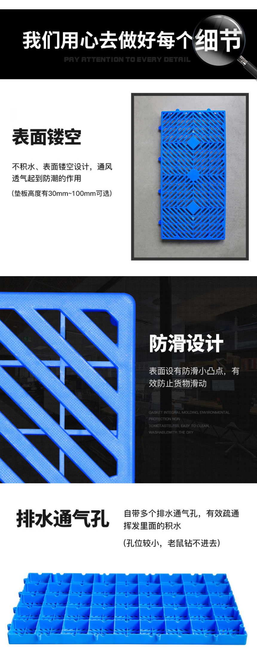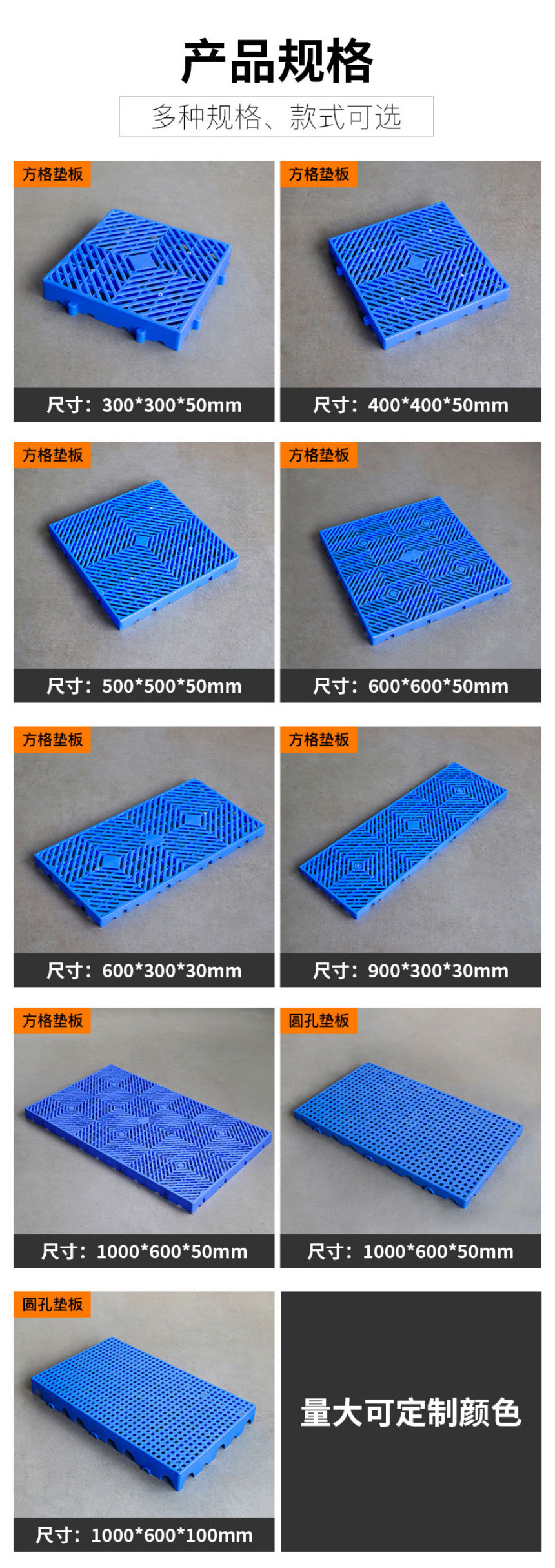 海斯迪克 加厚仓储货架板 KC62-4 塑料 蓝色方格 600*600*50mm 1件