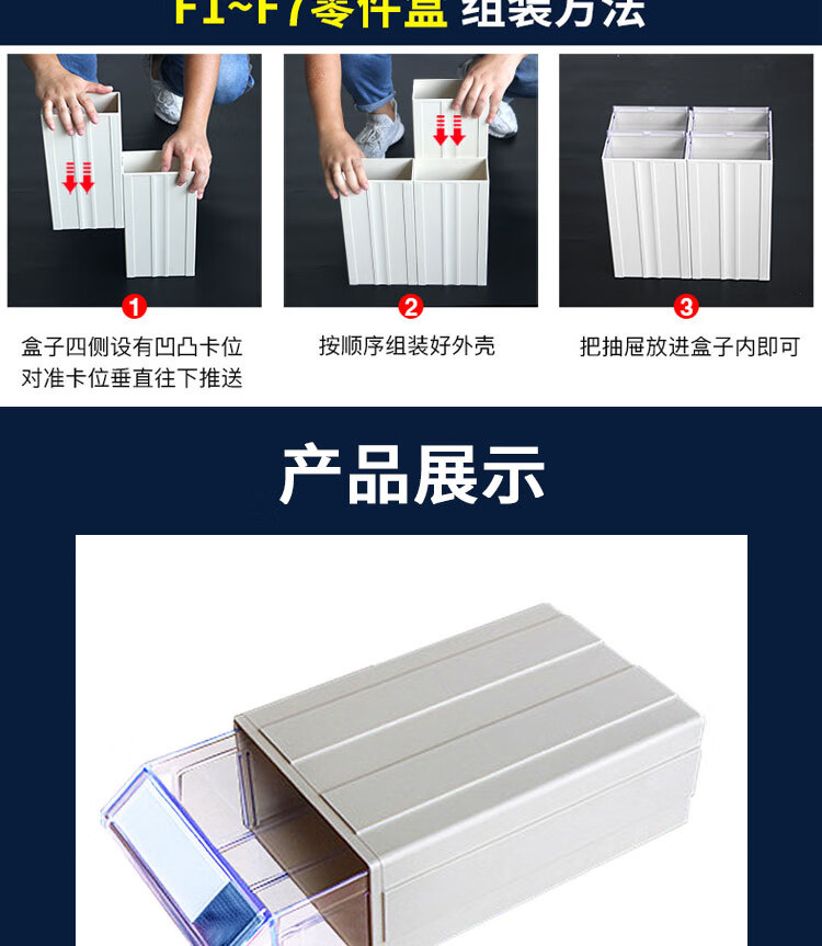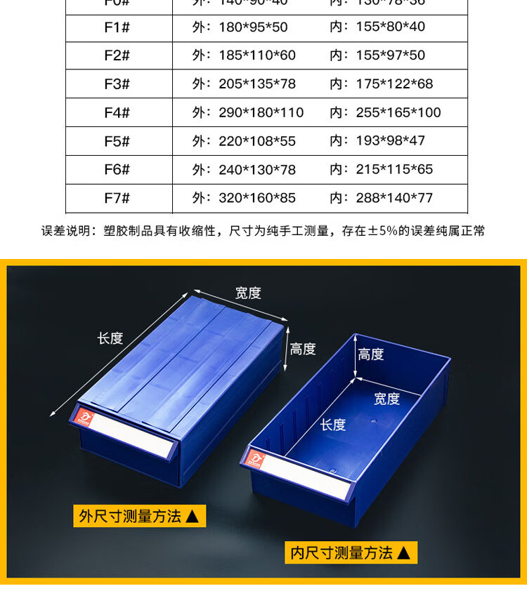 海斯迪克 抽屉式元件盒 KC65-7 塑料 蓝壳 F6#240*130*78mm 1件
