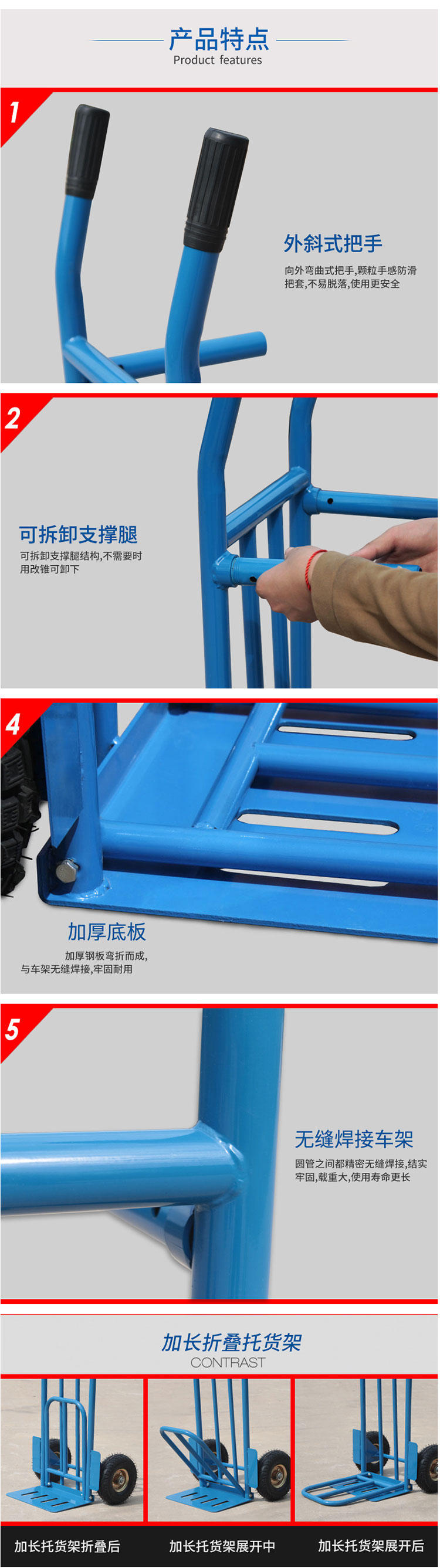 海斯迪克 老虎车 KC66-1 蓝色双杆 1.3米载重500斤(10寸实心轮) 1件