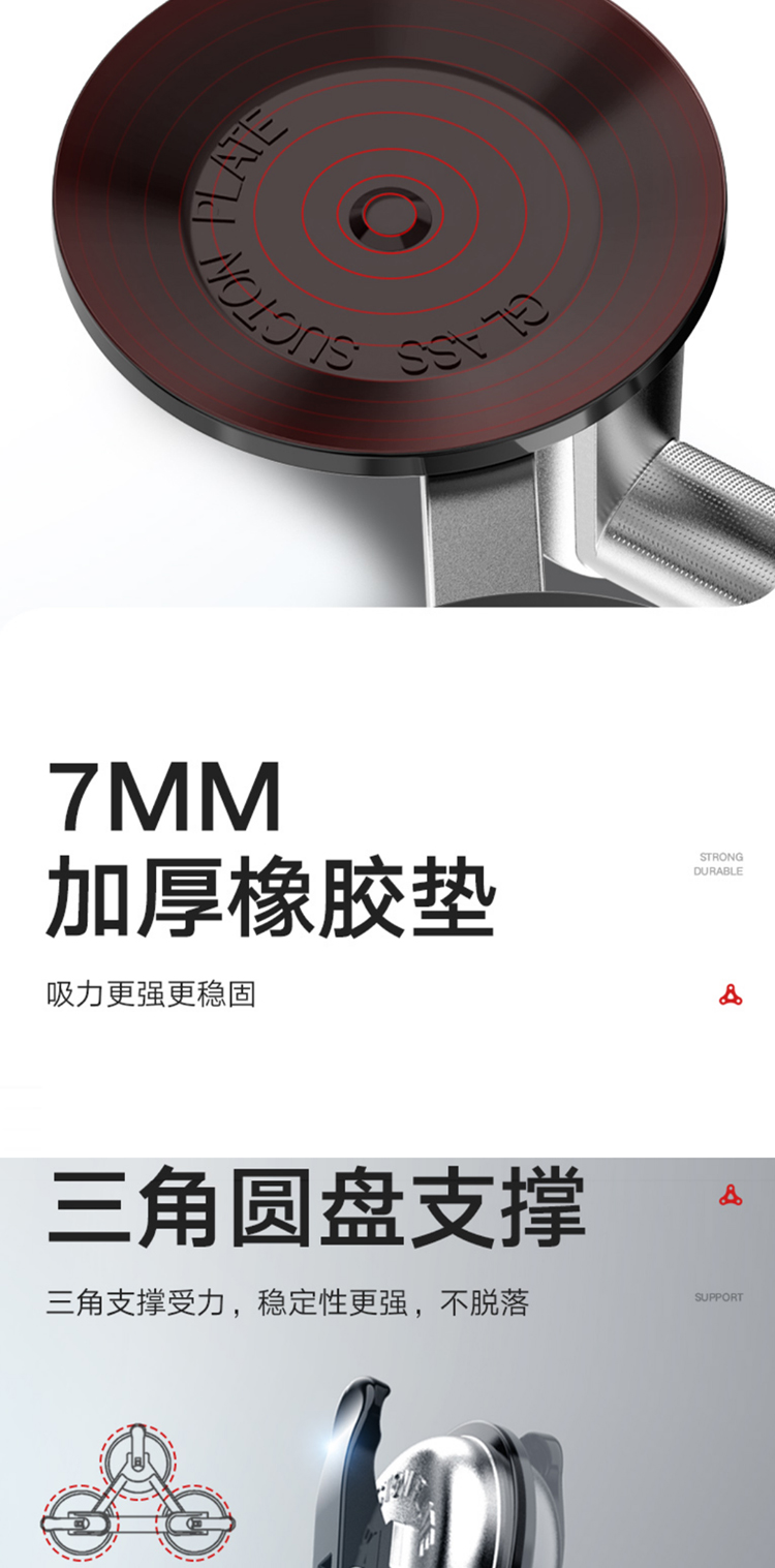 海斯迪克 玻璃吸盘 KC67-2 银色 铝合金 双爪款 1件