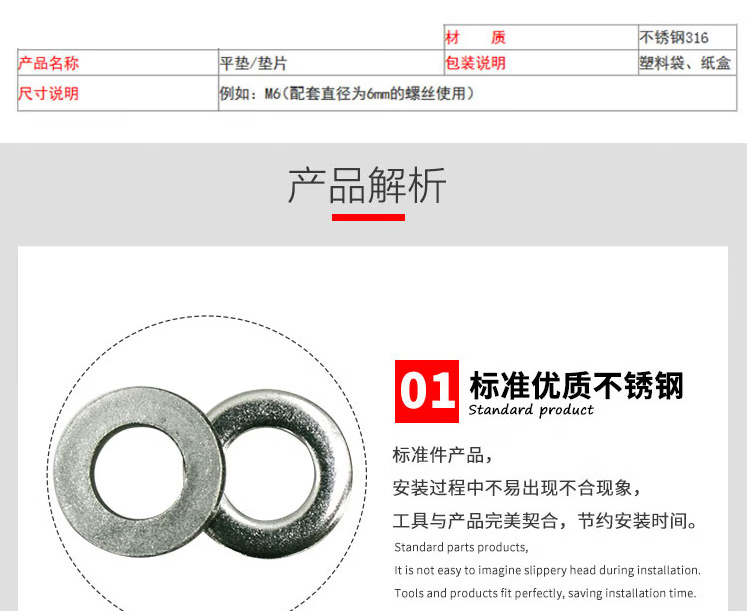 海斯迪克 316不锈钢平垫 KJ17-21 DIN125 A型 本色 M39 1个