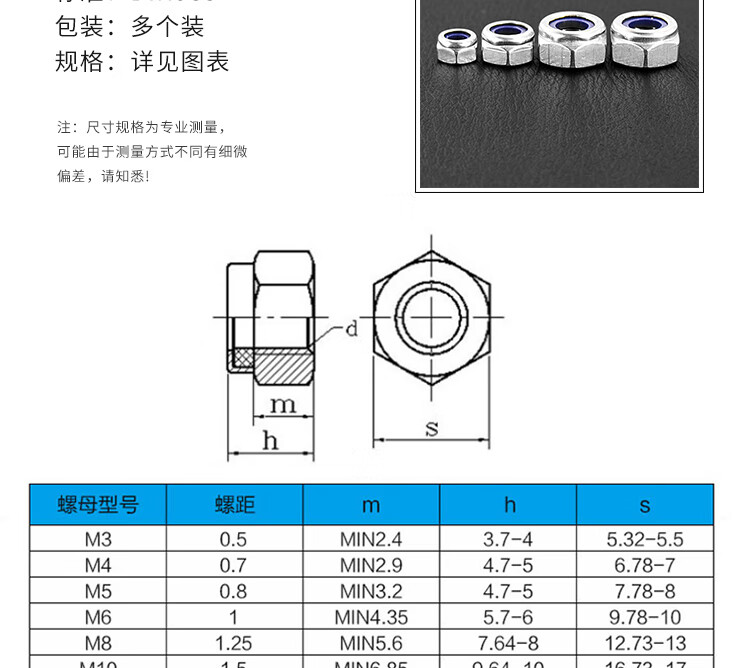 首页>紧固密封件>紧固件>螺母>六角螺母>海斯迪克 304不锈钢六角防松螺母