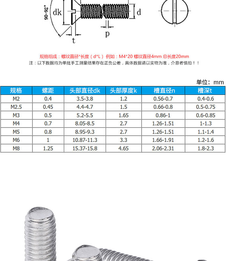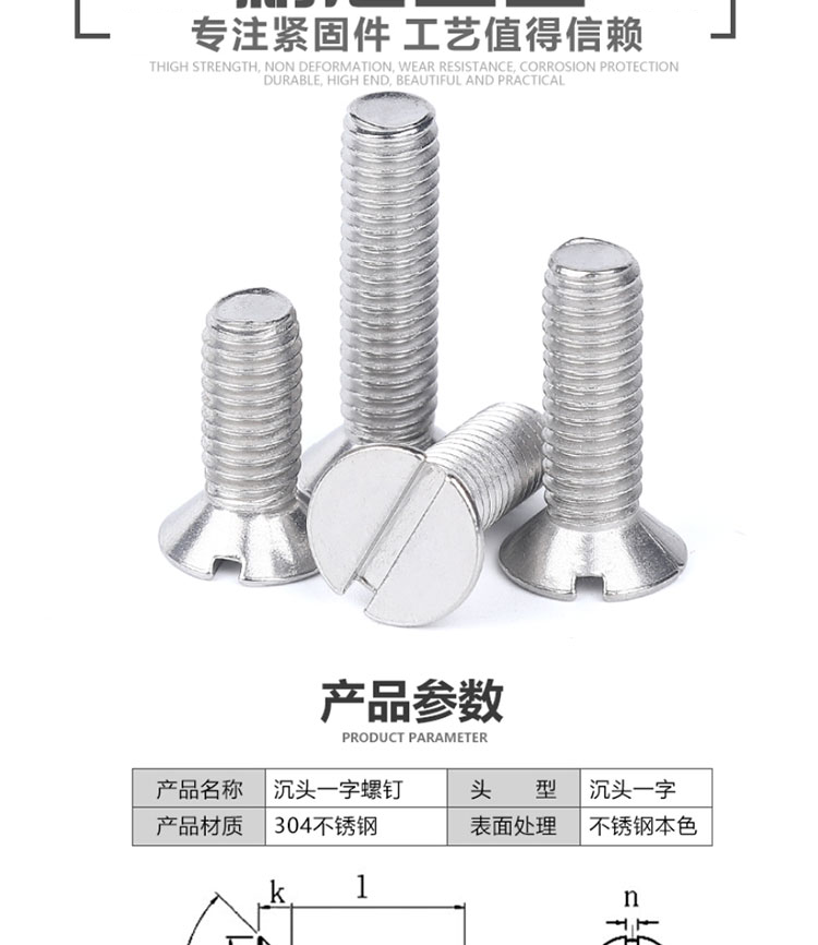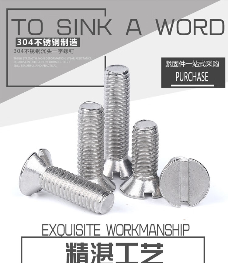 • 商品名称:海斯迪克 304不锈钢一字槽沉头机螺钉