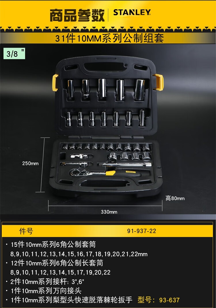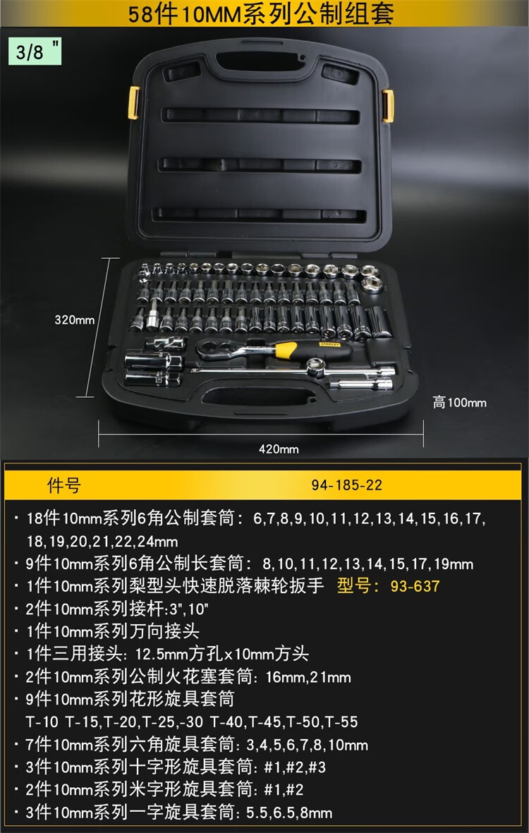 史丹利 10MM棘轮扳手公制套筒套装 94-185-22 58件 1套