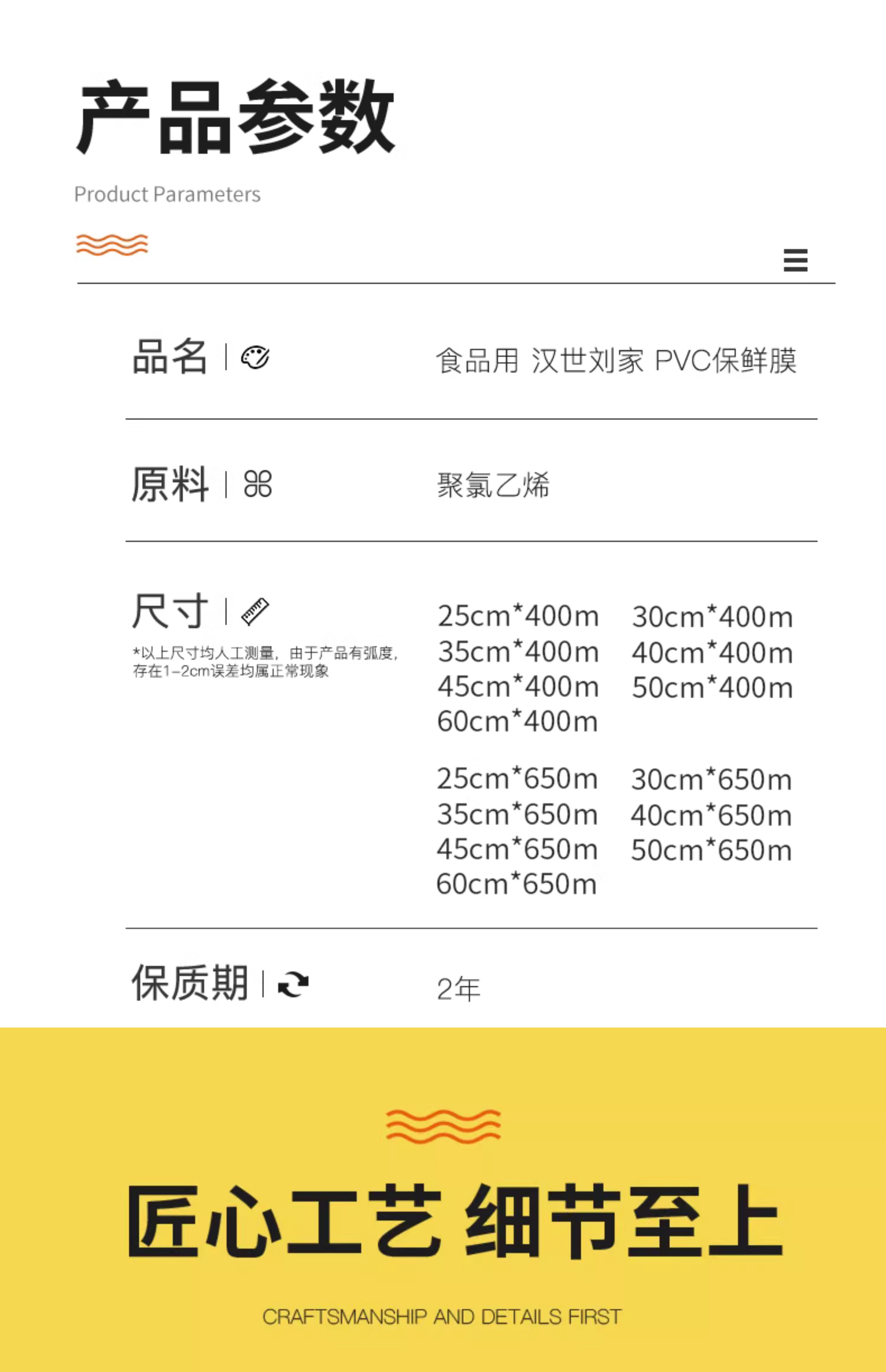 汉世刘家 保鲜膜 宽50cm*长400m 约3.2斤 1卷