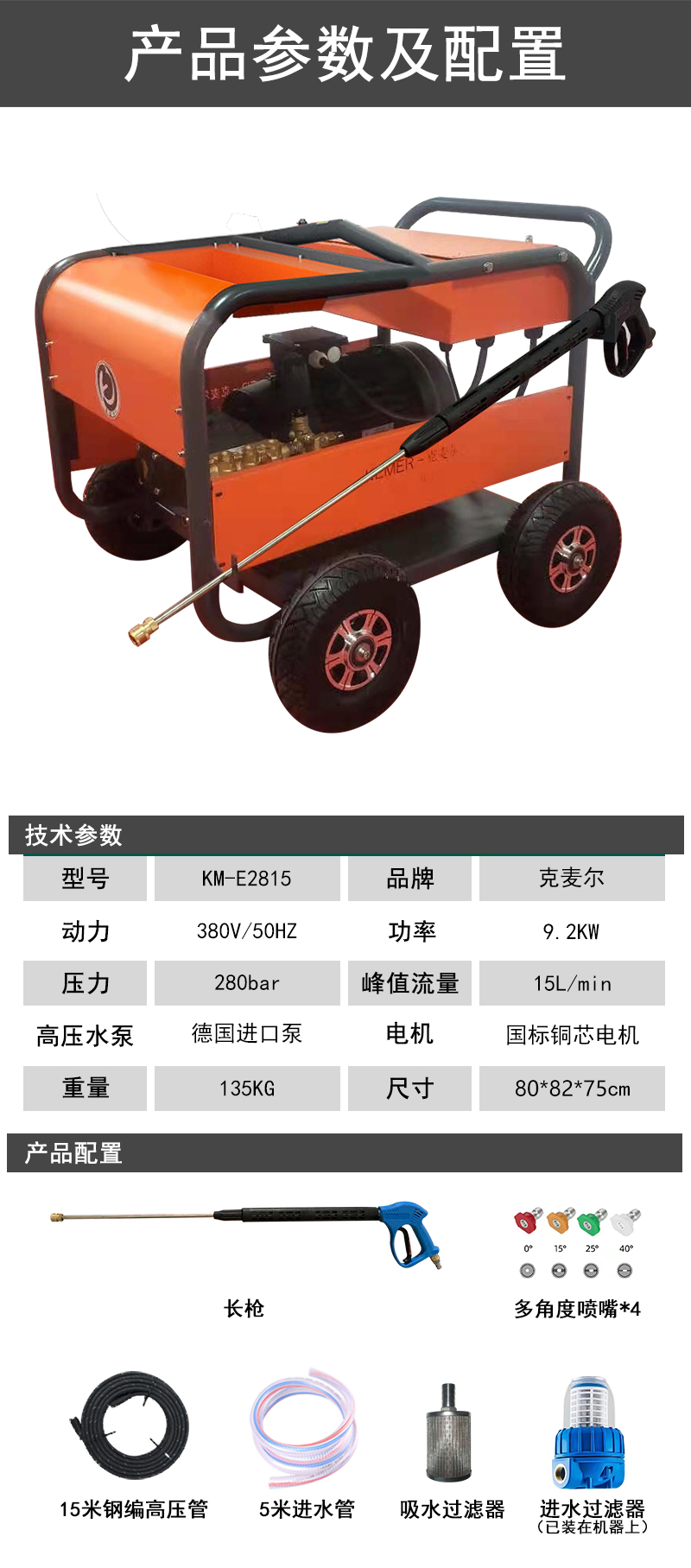 克麦尔 高压清洗机 KM-E2815 380V 9.2KW 15L/min 1台