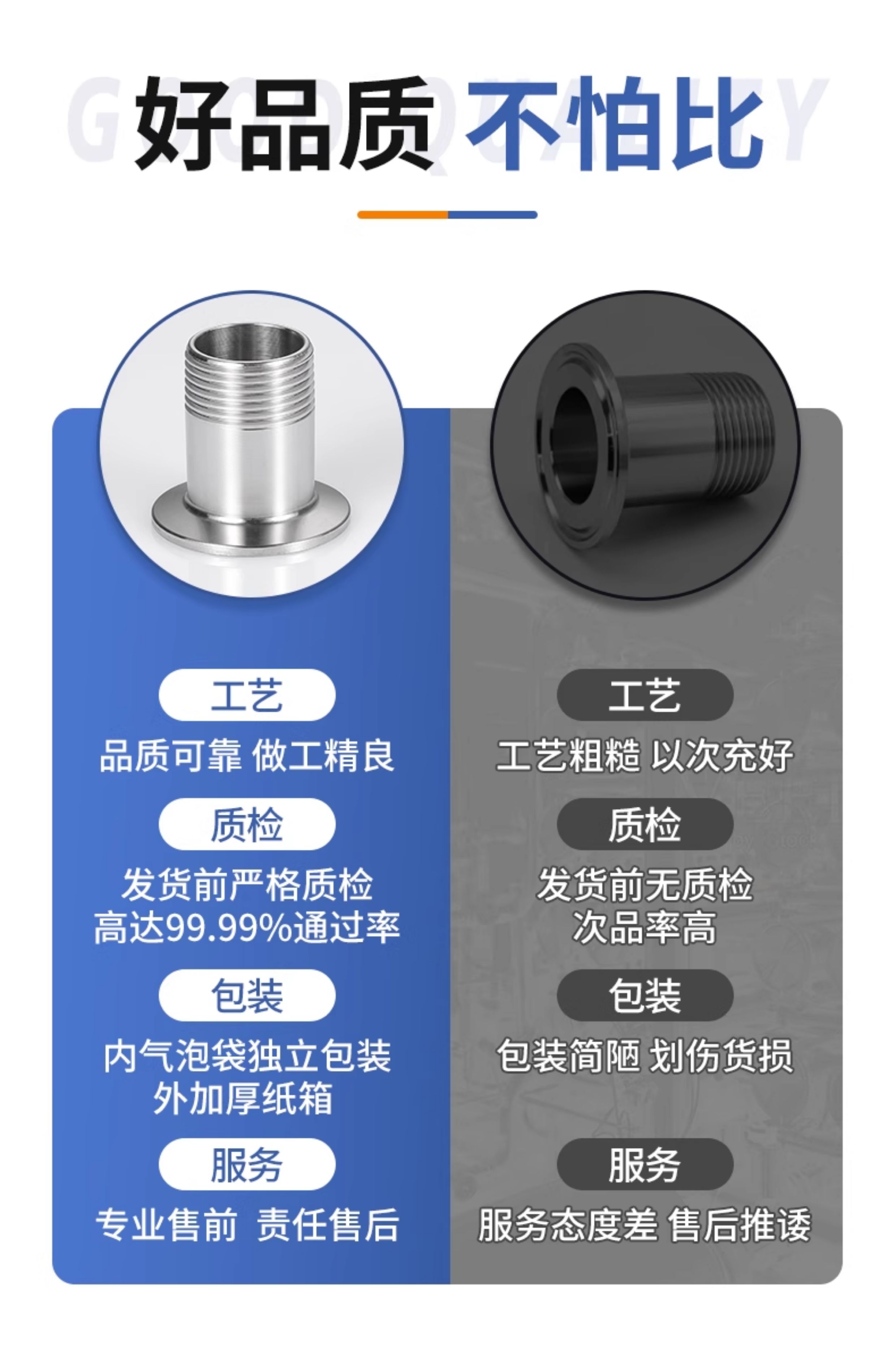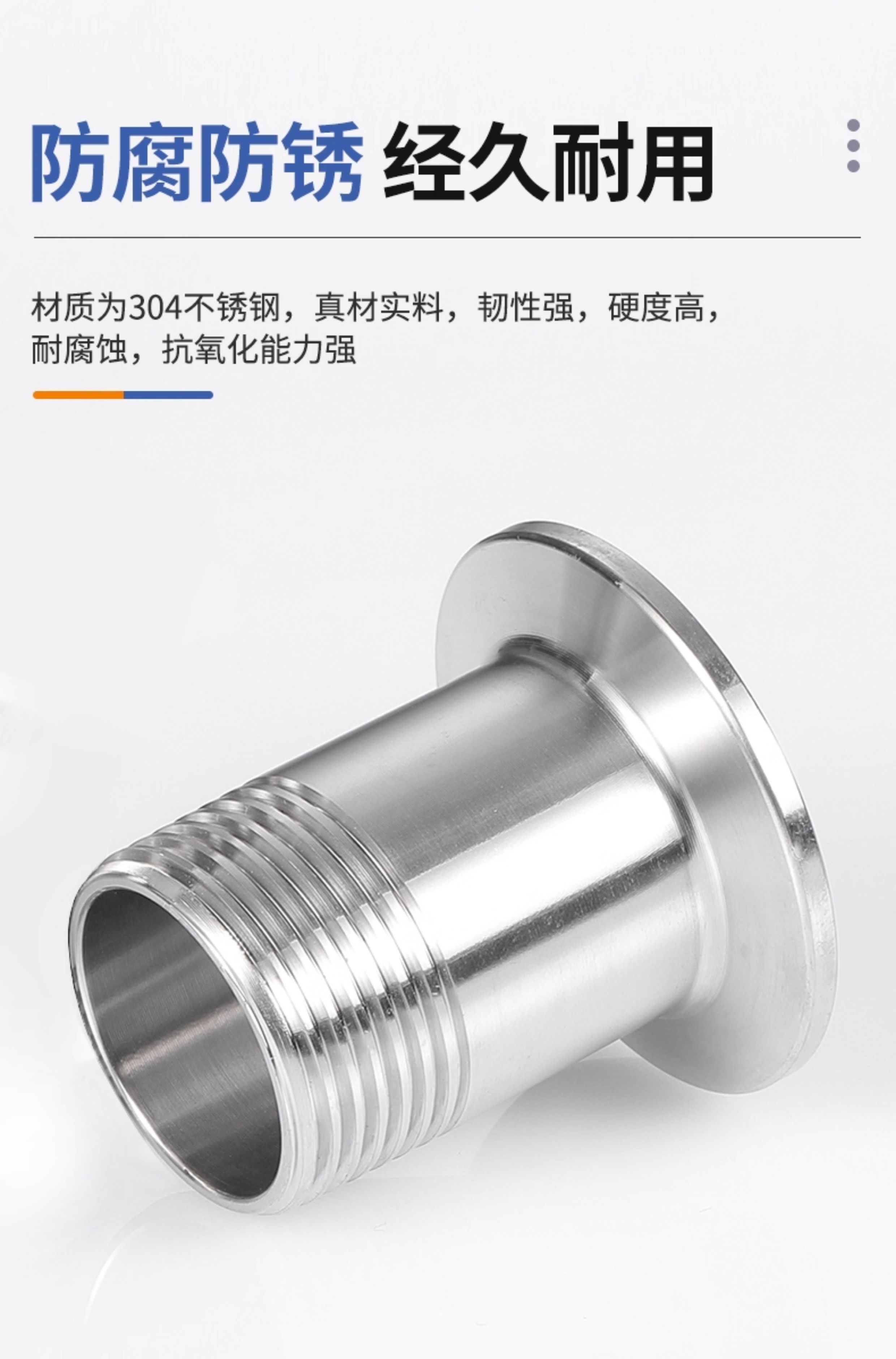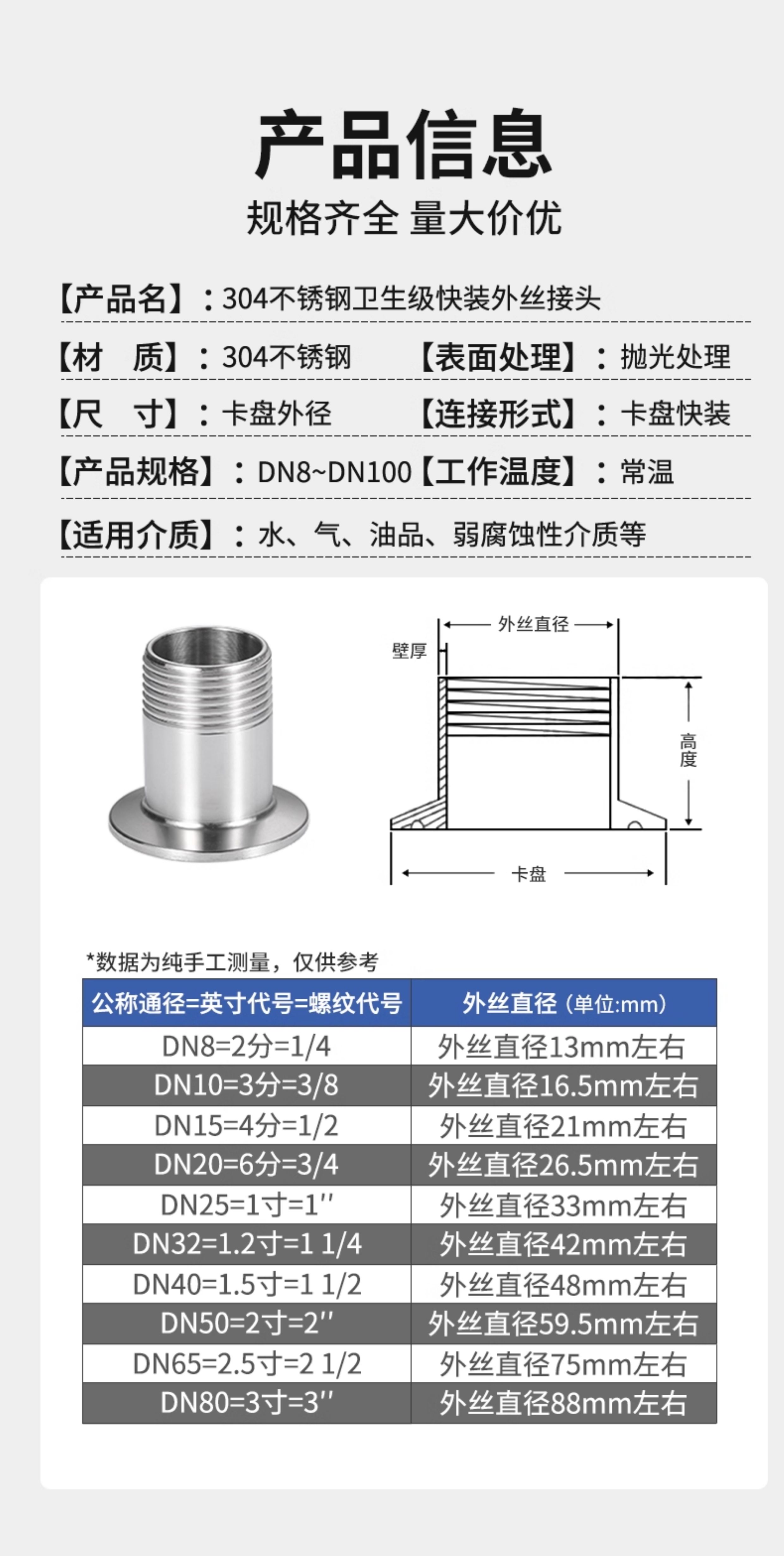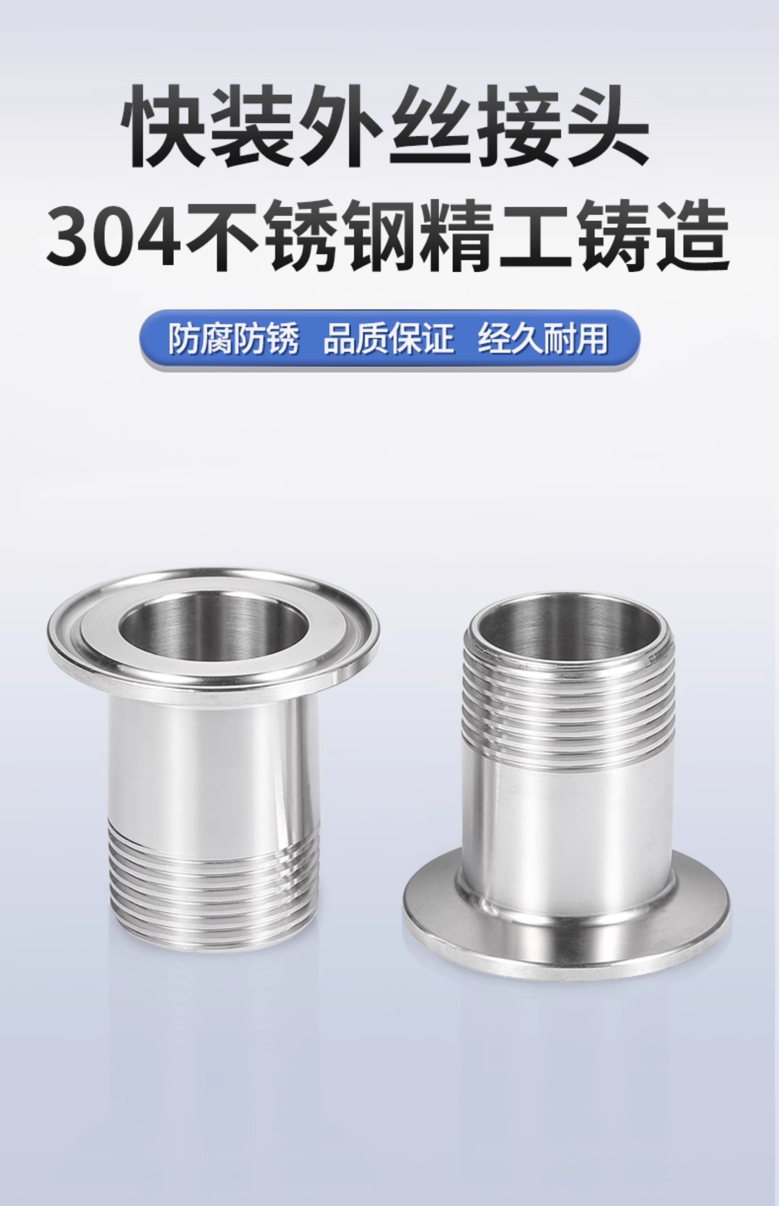 国产通用 304不锈钢卫生级快装外丝接头 2分DN8 卡盘50.5 1个