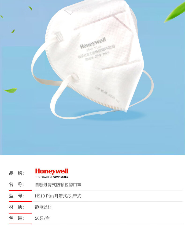 霍尼韦尔 KN95折叠式带阀口罩 H1009102V 头戴式 带阀 单片装 1个