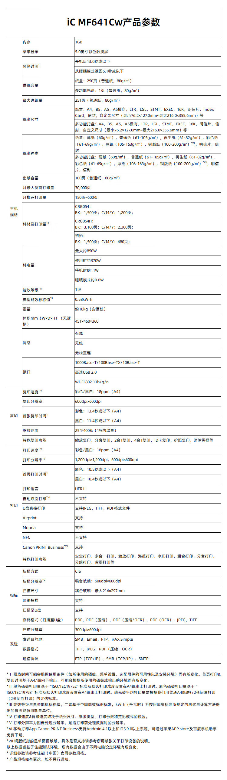 佳能 彩色激光无线打印机 MF641Cw 手动双面 1台