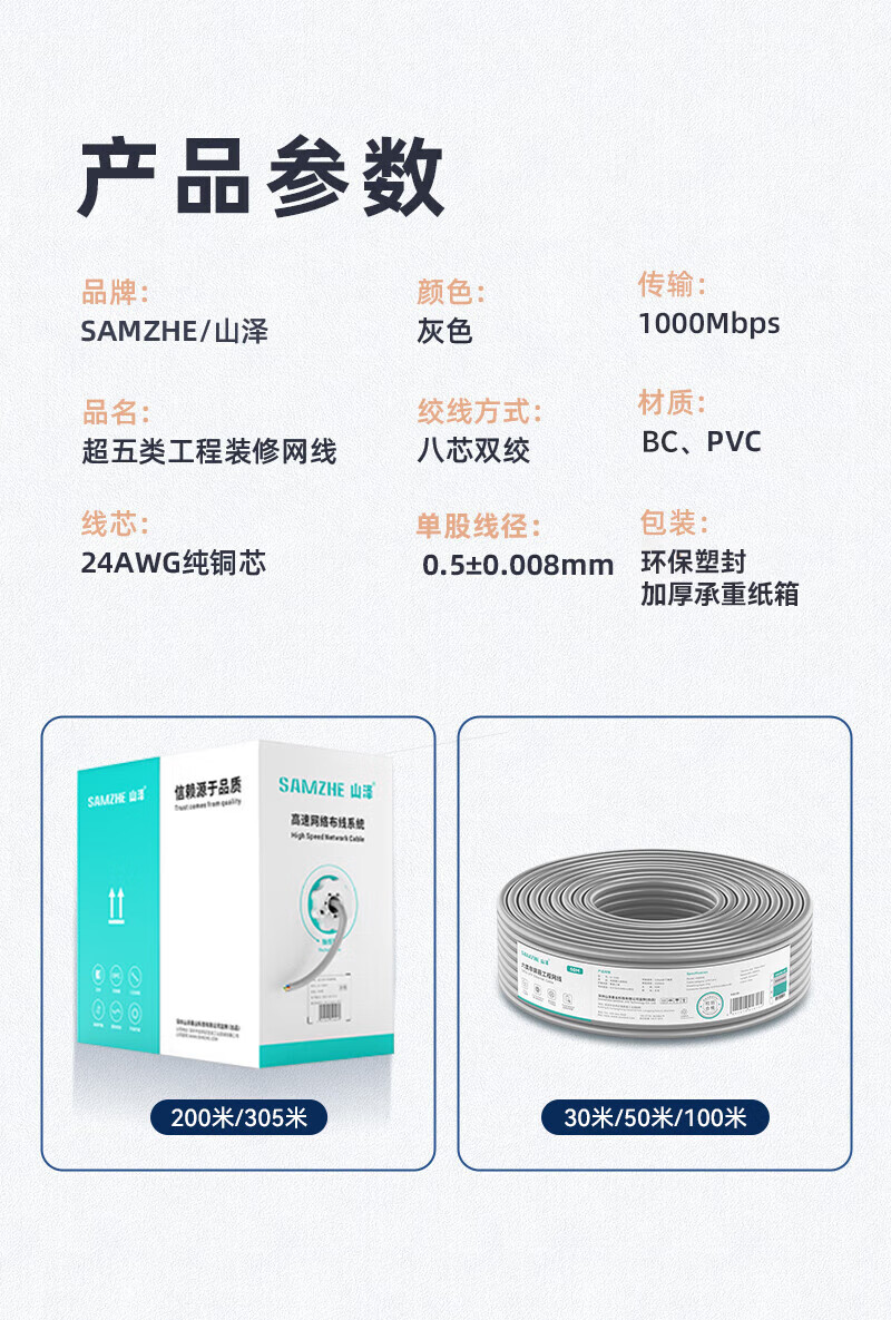 山泽 超五类千兆网线 SZ-5305A 非屏蔽-0.5mm 305米 1箱