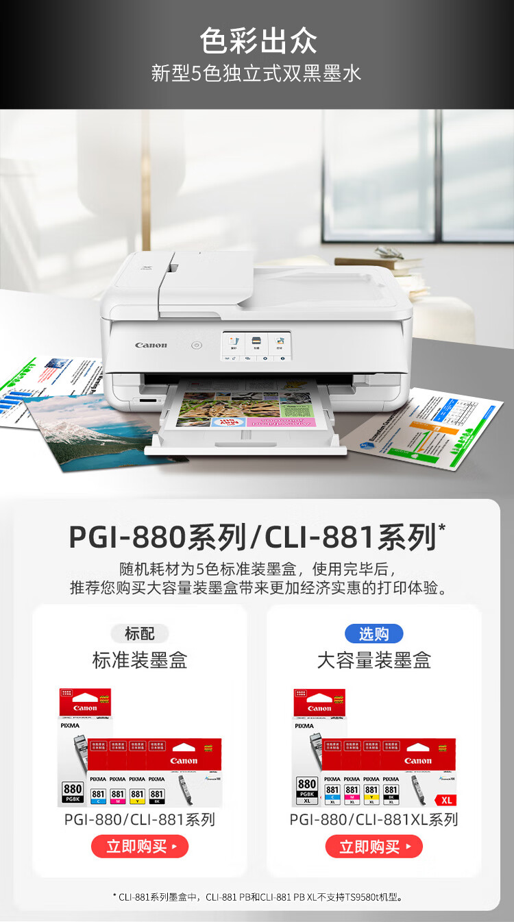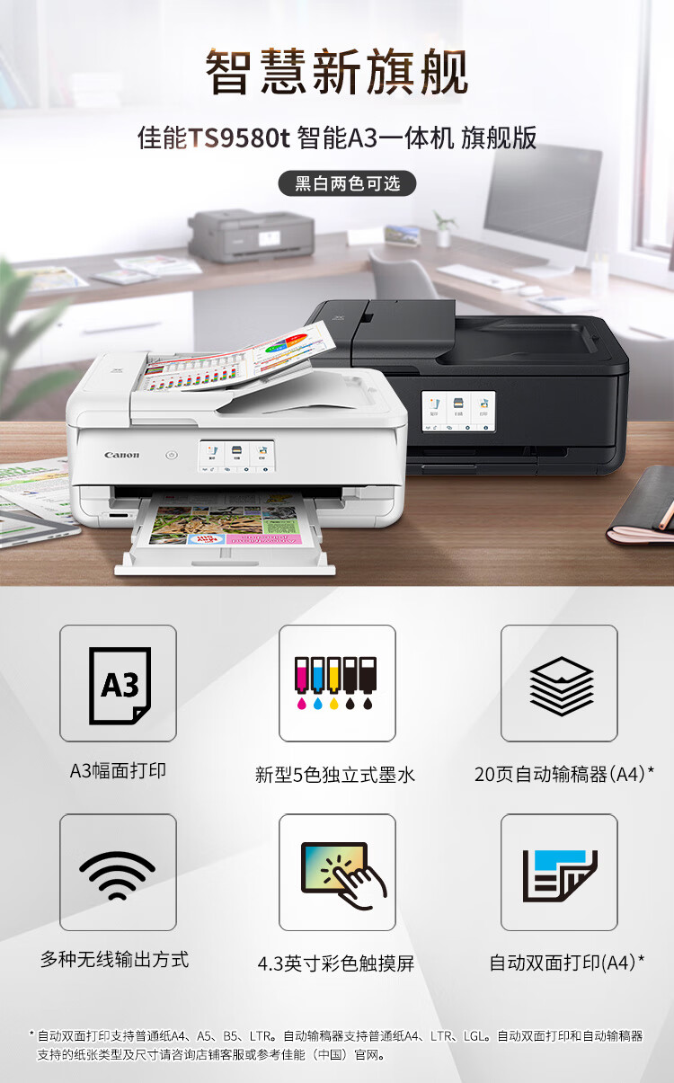 佳能 彩色喷墨一体机 TS9580t A3打印+A4复印 1台