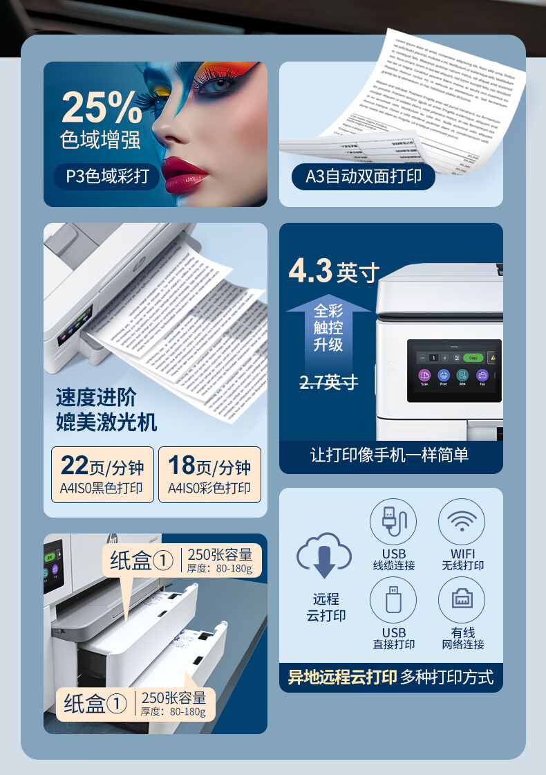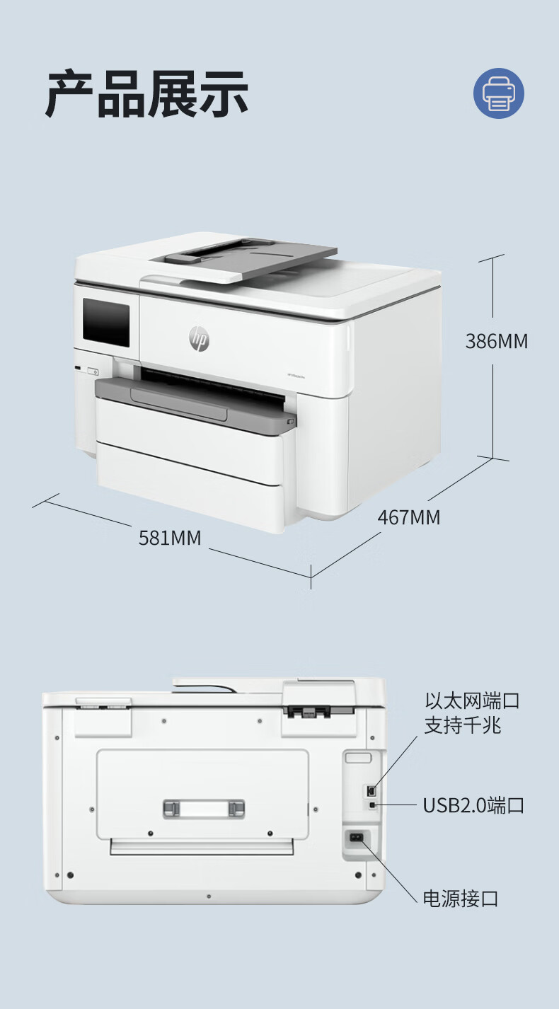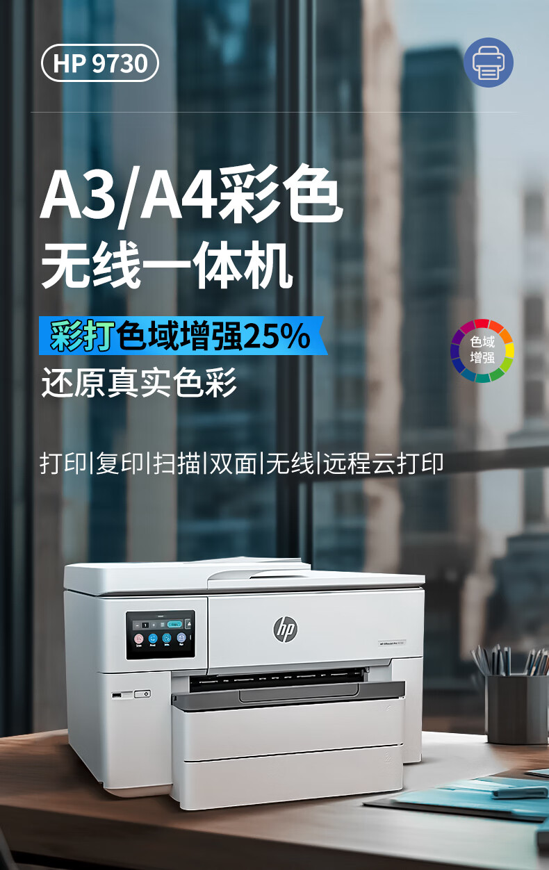 惠普 彩色喷墨打印复印扫描一体机 9720 A3打印+A4打印复印 1台
