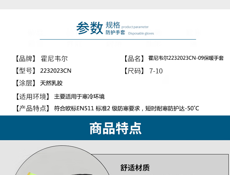 霍尼韦尔 乳胶耐磨防寒保暖手套 2232023CN 10码 1双