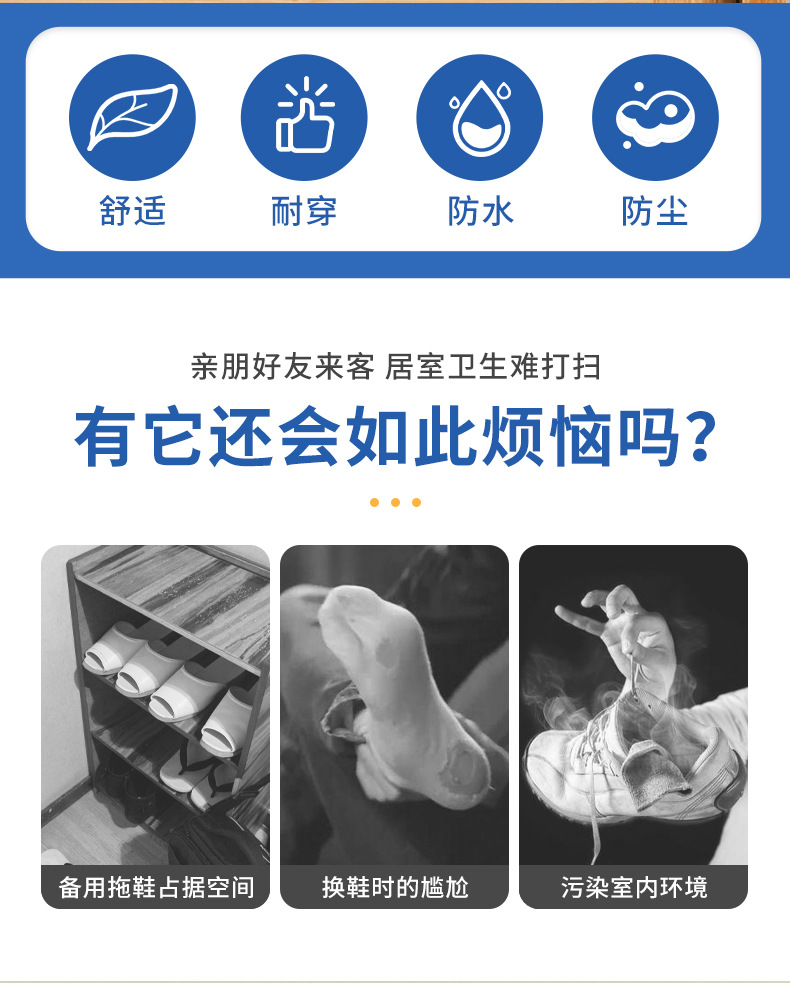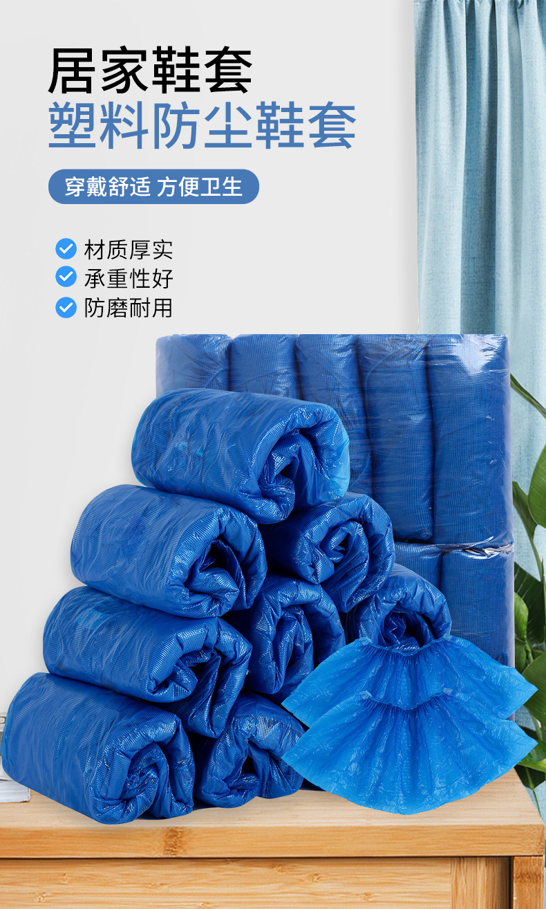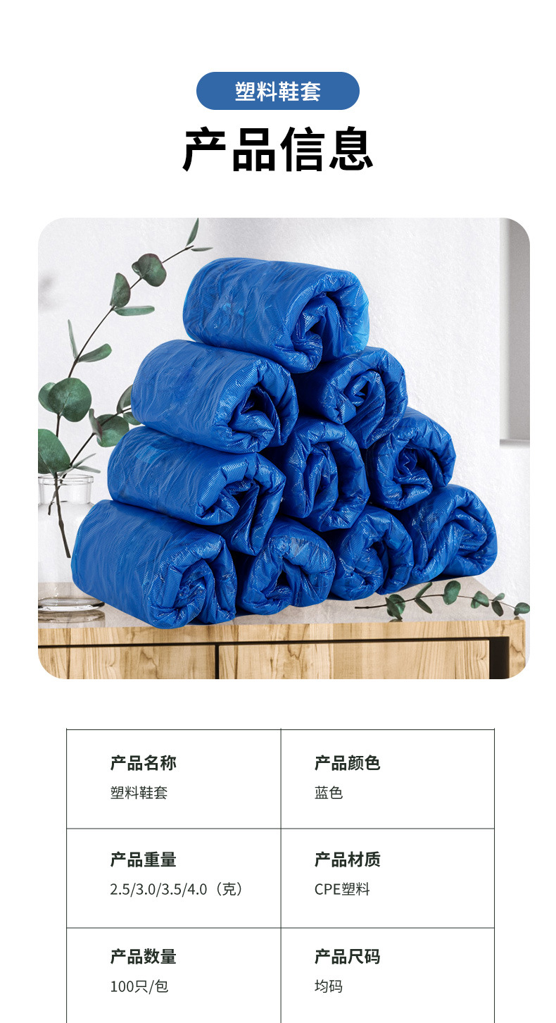 国产通用 一次性鞋套 蓝色 特厚款 CPE材质 100只 1包
