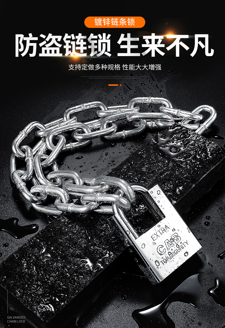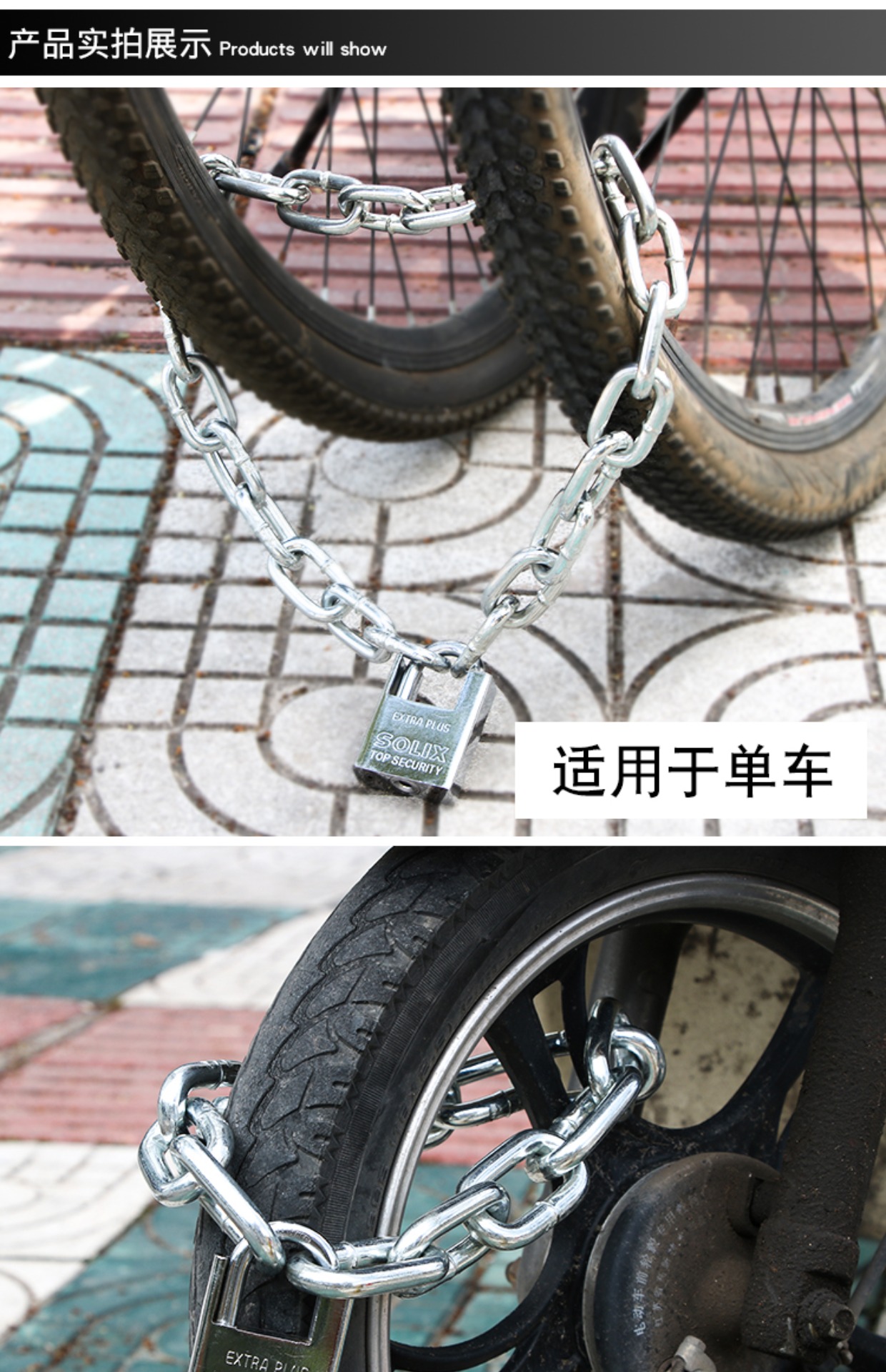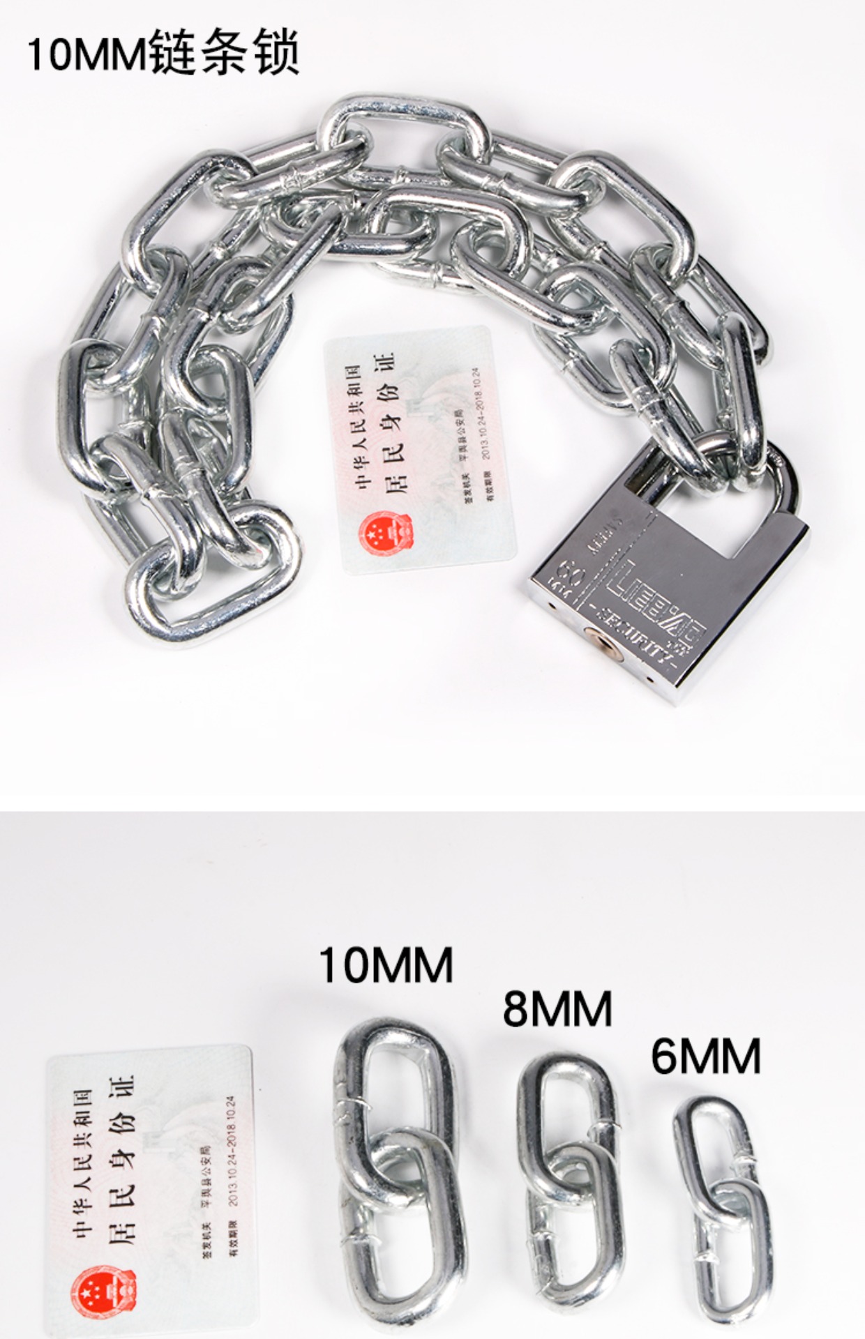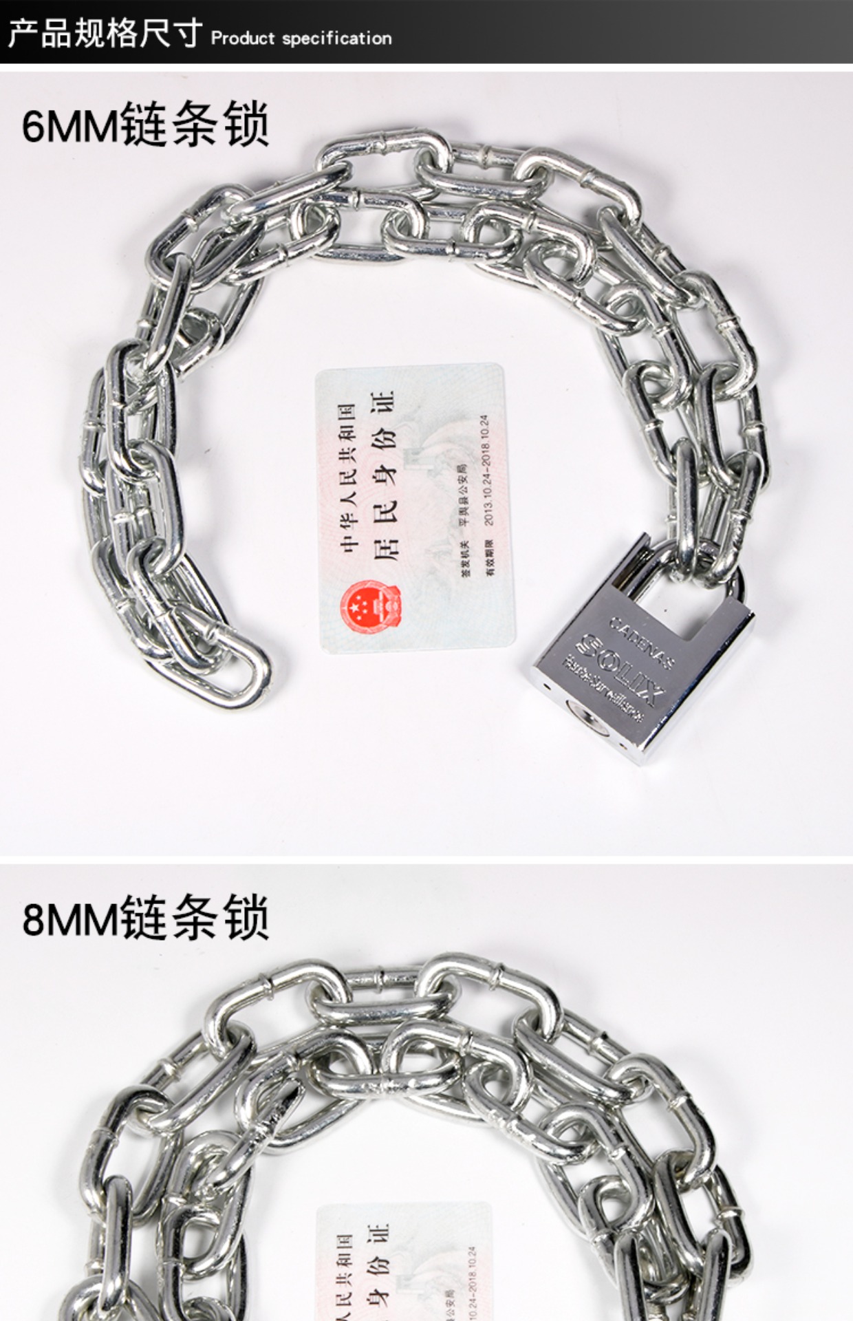 国产通用 链条锁 2米长6mm链条+防剪锁 1把