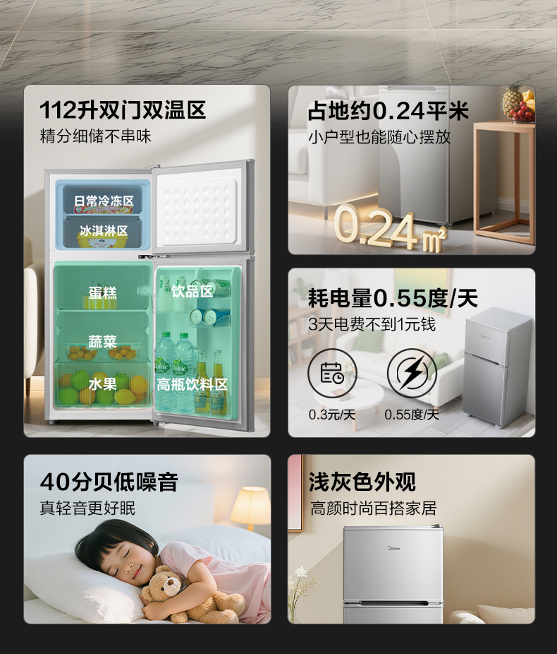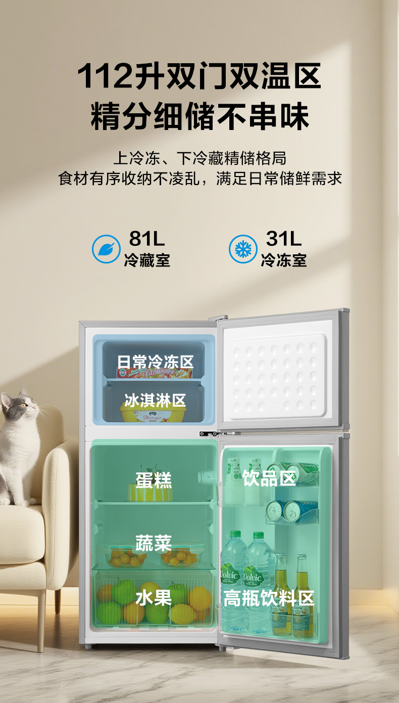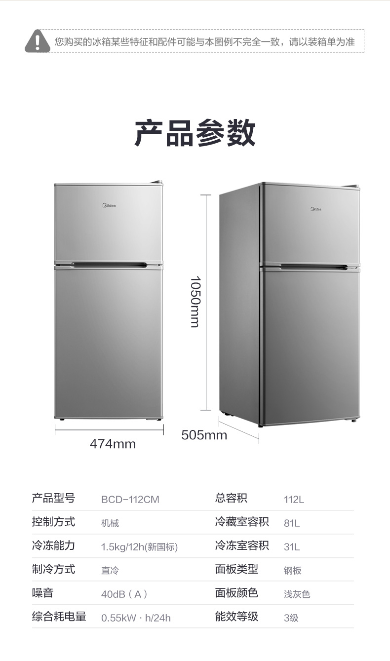 美的 双门迷你冰箱 BCD-112CM 112L 1台