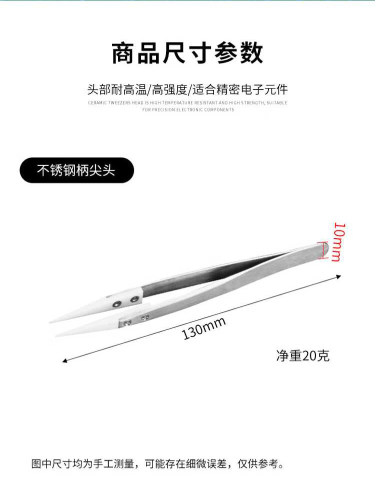 海斯迪克 陶瓷镊子 wj-163 尖头 2个 1件