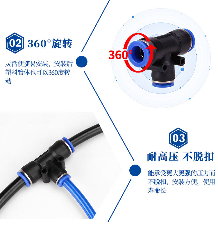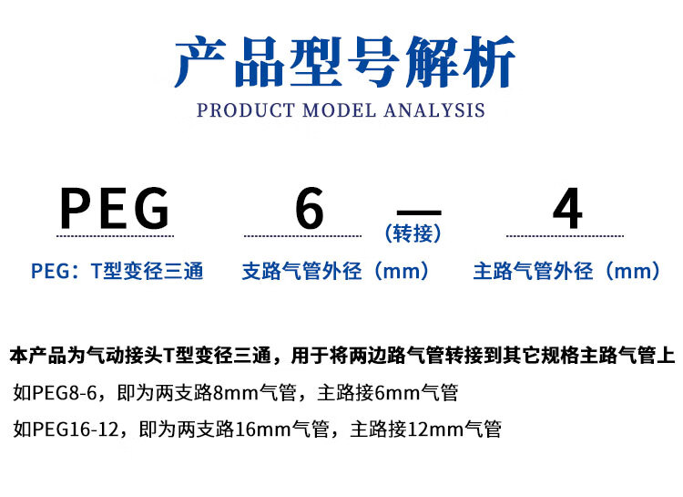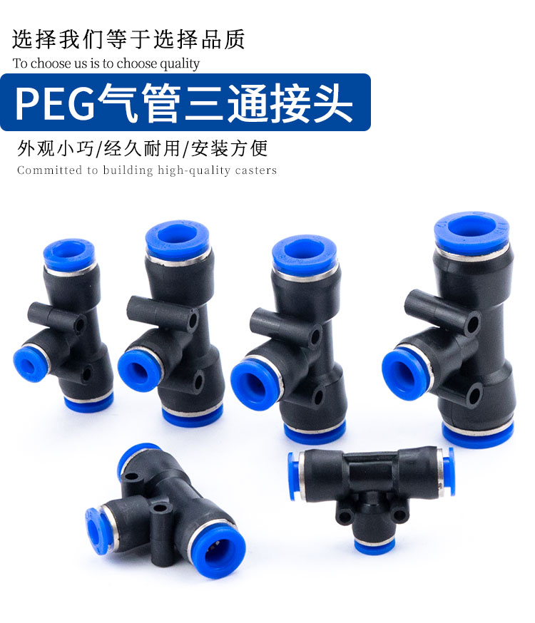• 商品名称:海斯迪克 PEG塑料T型变径三通快插接头