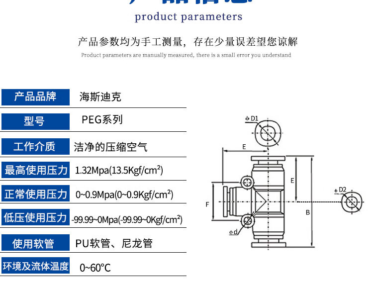 首页>气动液压>气动元件>气动辅助元件>气动快速接头>海斯迪克 PEG塑料T型变径三通快插接头