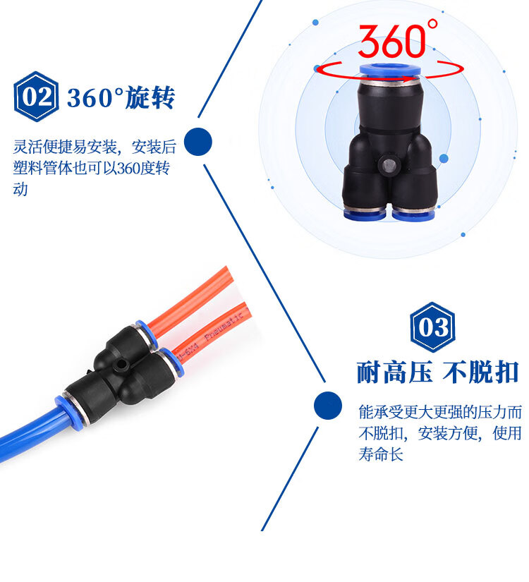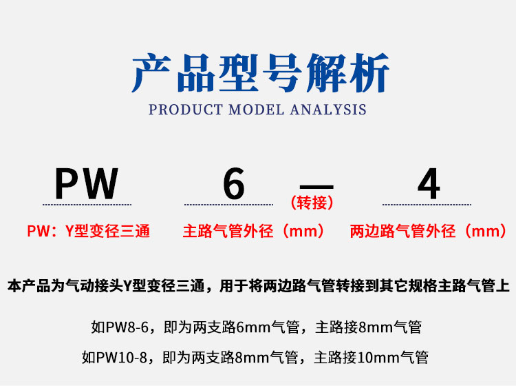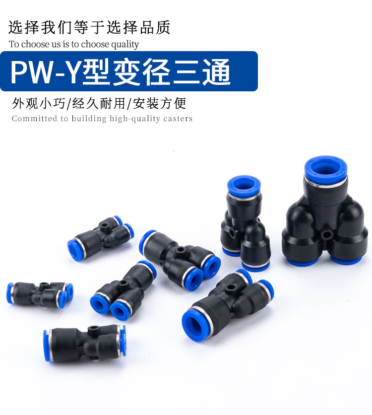 海斯迪克 PW Y型三通变径快插接头 KO18-2 PW8-4 1个