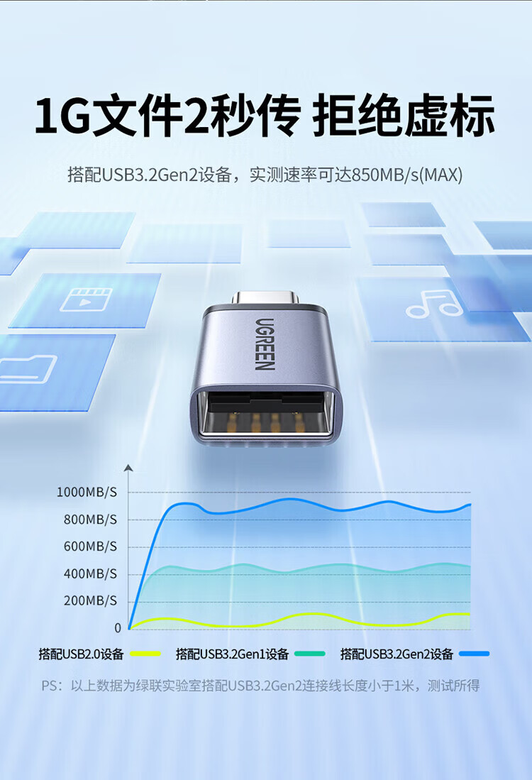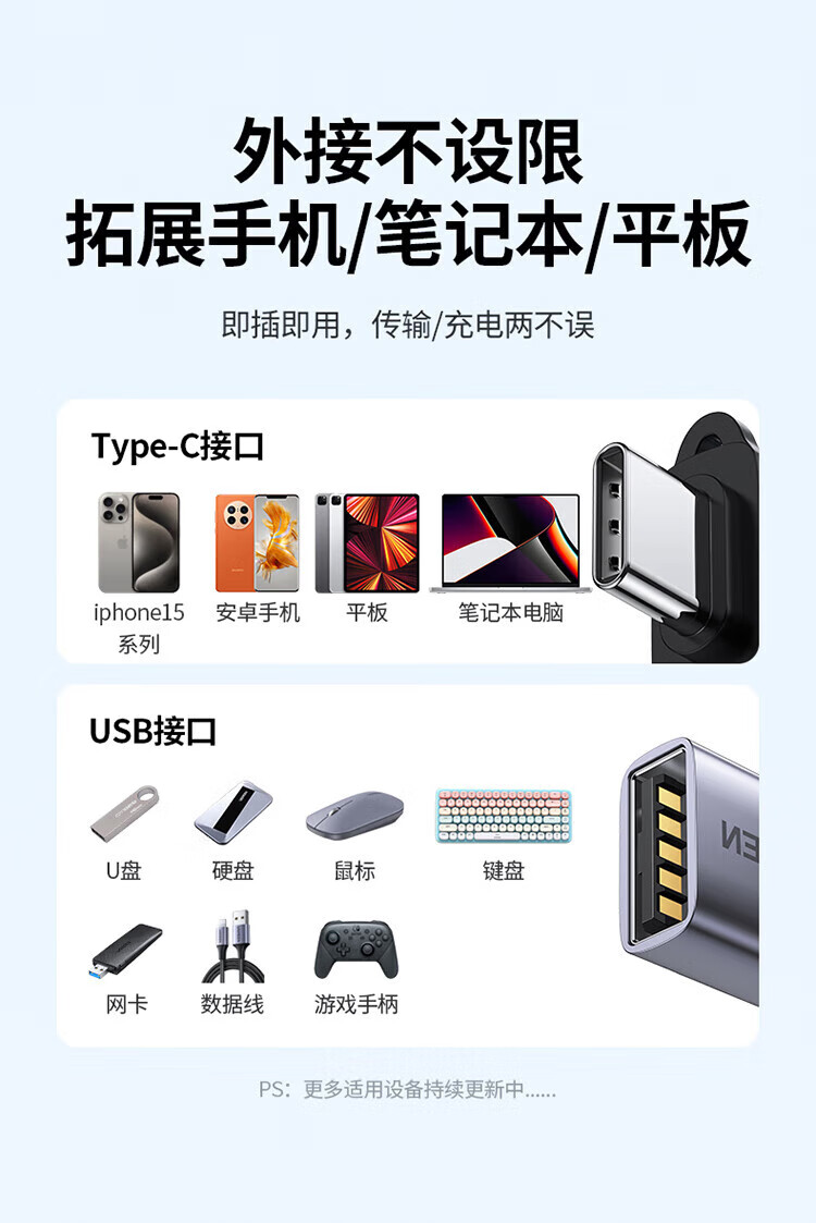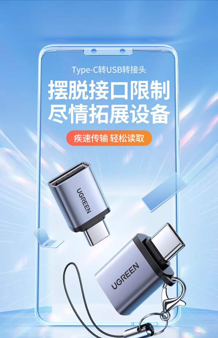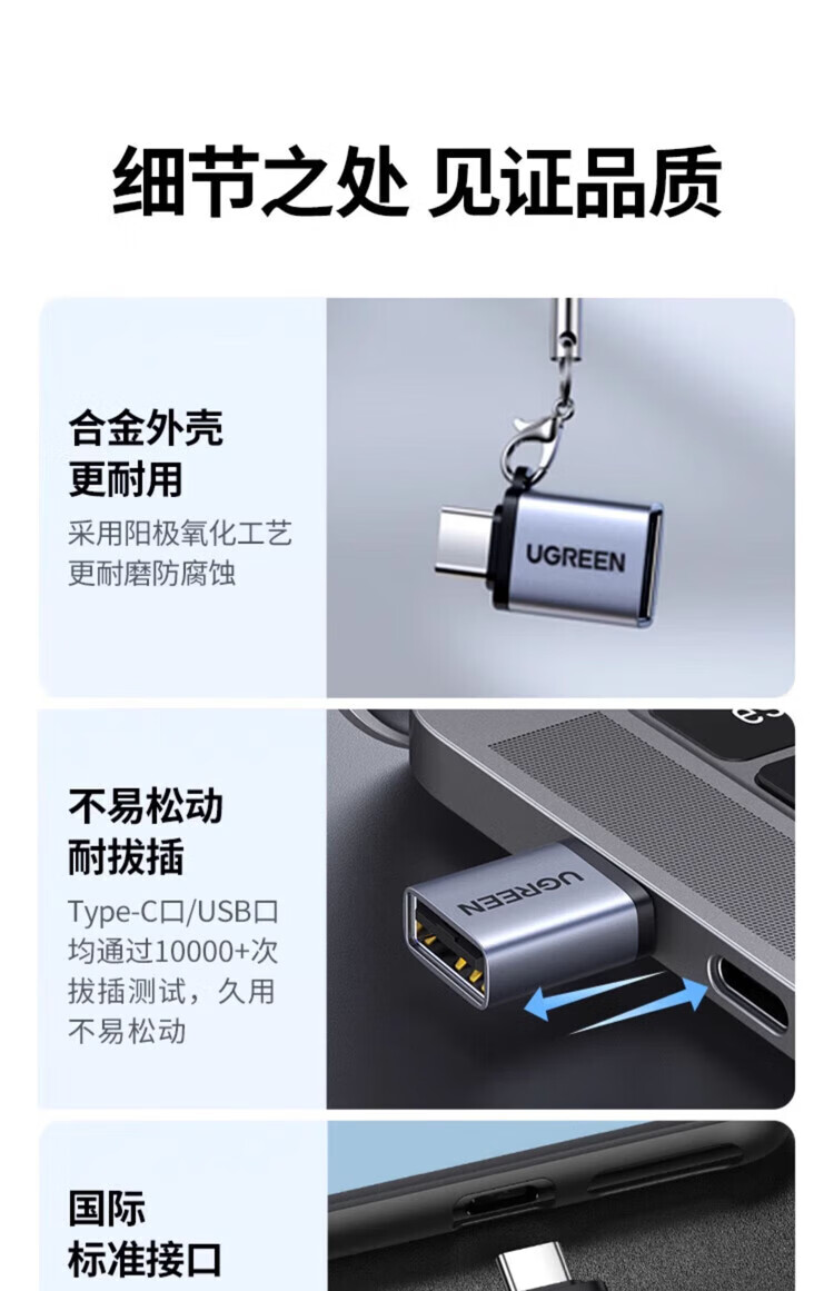 绿联 转换头器 US248/40702 深空灰 Type-C转USB 1个