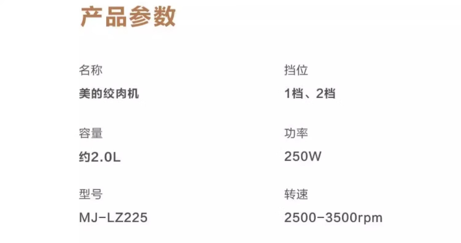 美的 绞肉机 MJ-LZ25Easy225 250W 2L 1个