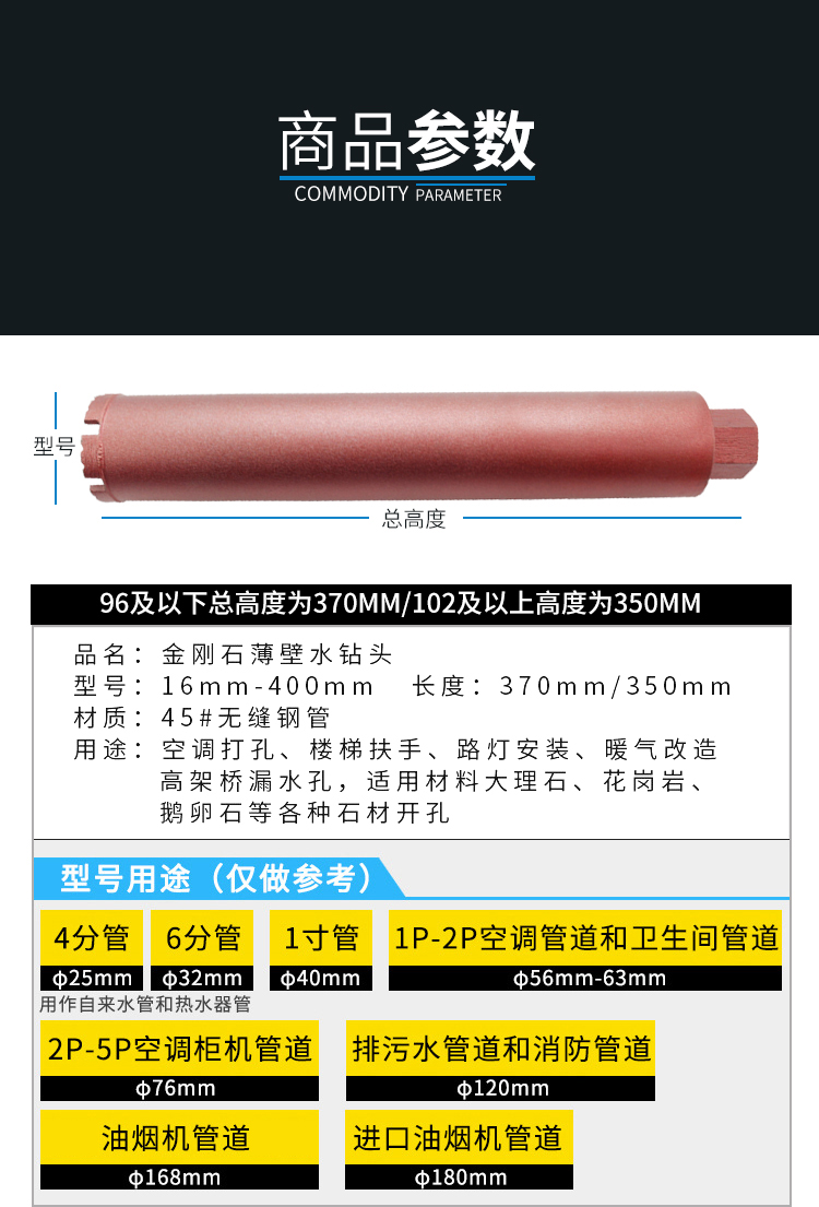 海斯迪克 金刚石水钻头 KK52-18 76*370 1个