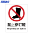 海斯迪克 禁止穿钉鞋 安全标识牌 KS141-5 ABS 25×31.5cm 1个