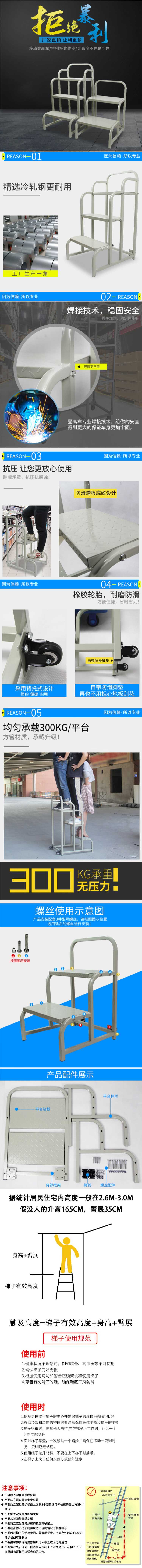 海斯迪克 超市移动平台梯 KC87-2 拆卸款三步梯 1件