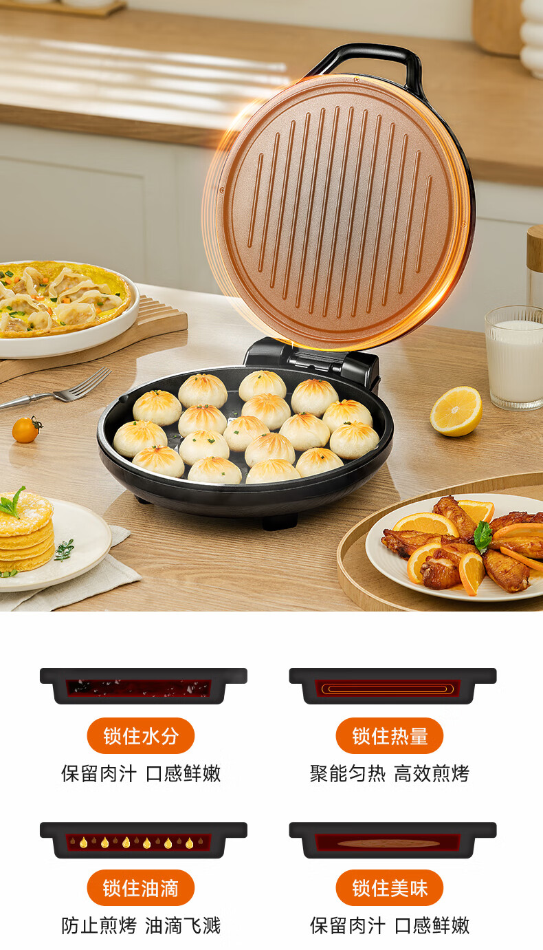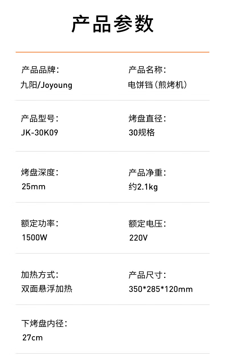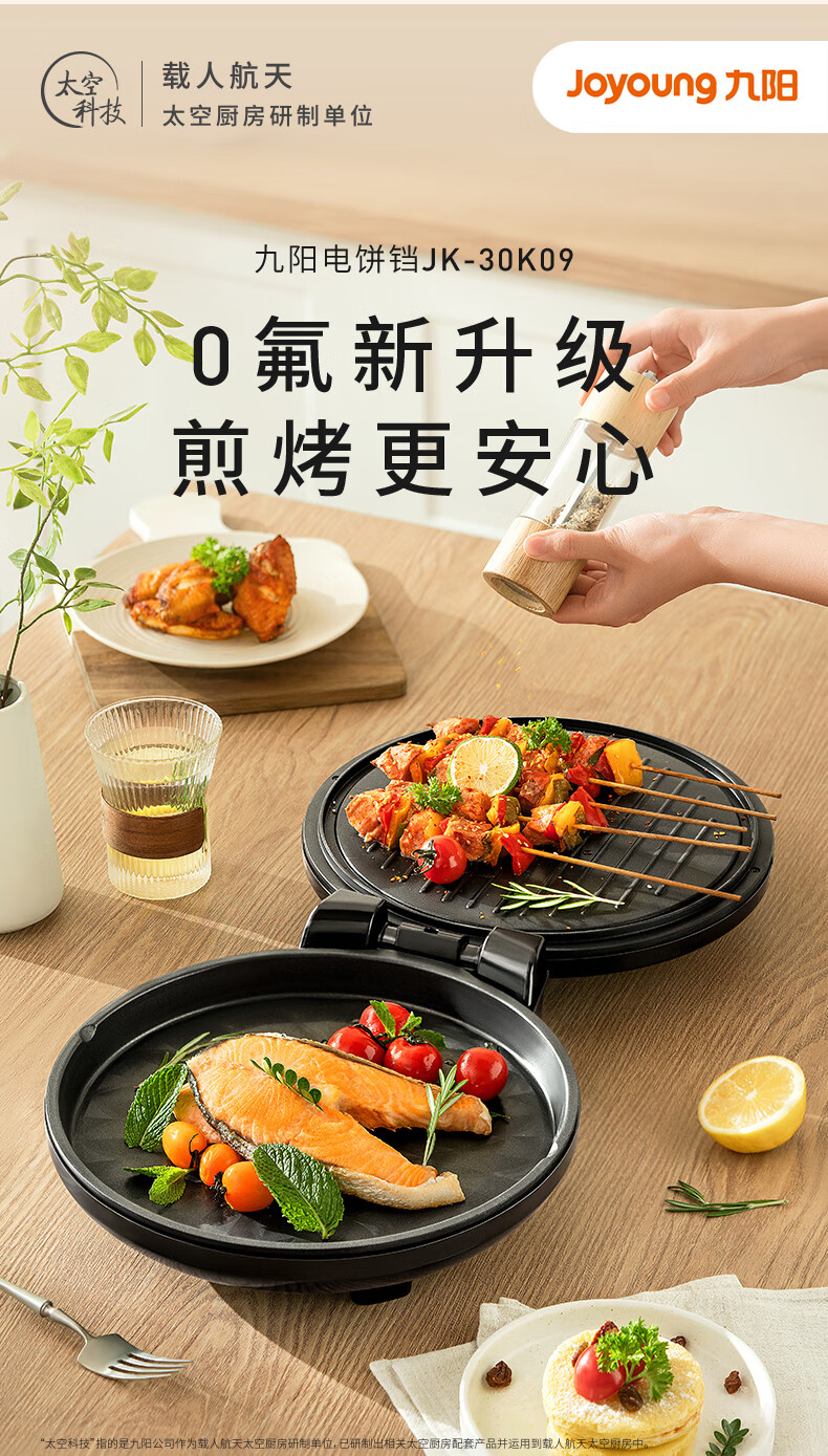 九阳 氟家用电饼铛 JK-30K09 亮面黑 1500W 直径30 1个