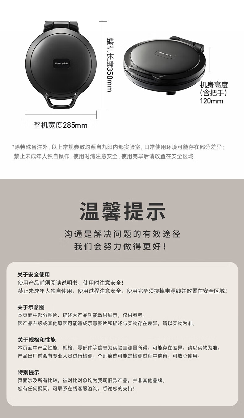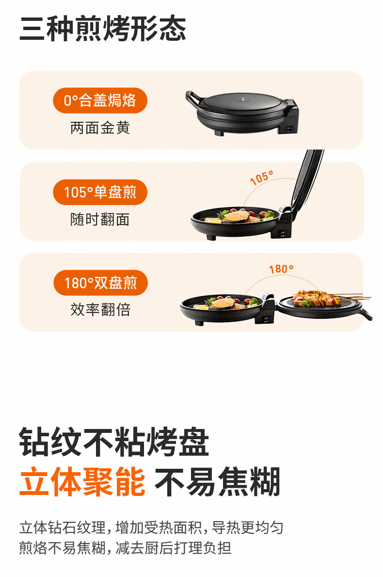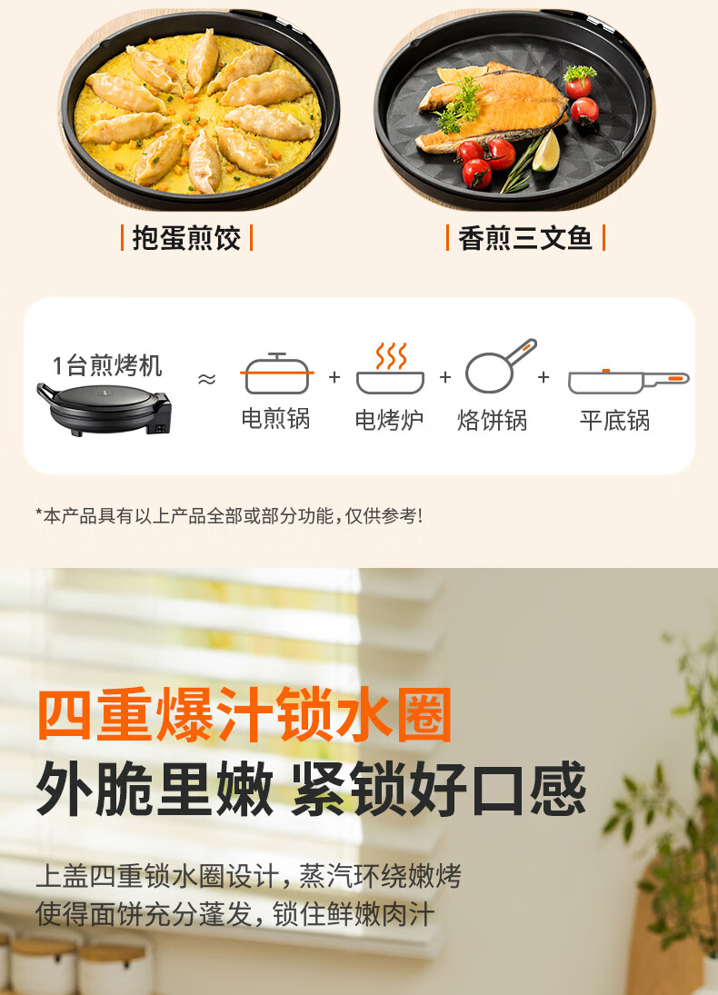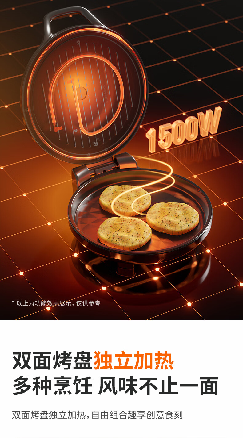 九阳 氟家用电饼铛 JK-30K09 亮面黑 1500W 直径30 1个