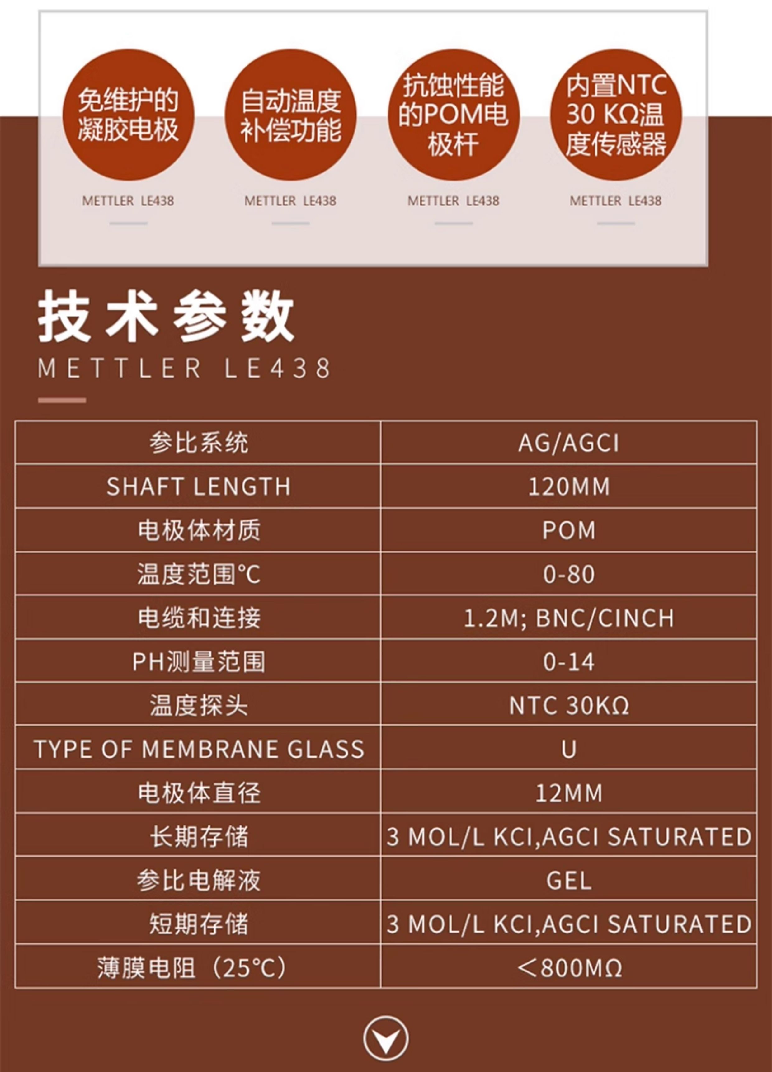 梅特勒托利多 实验室酸度计 【PH复合电极】LE438 1个