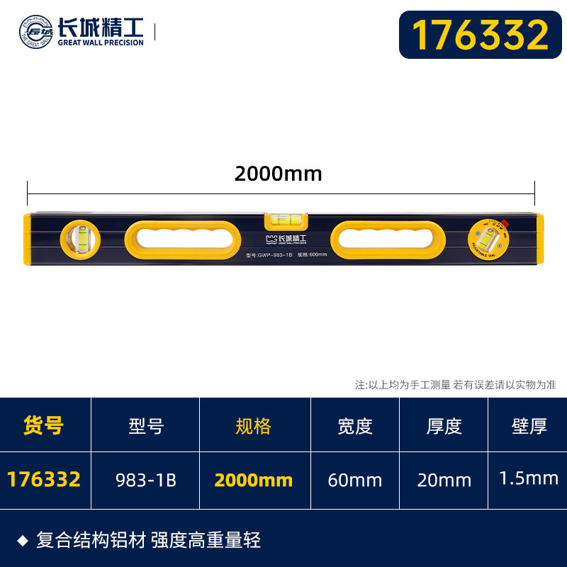 长城精工 双面铣大水泡水平尺 176332 GWP-983-1B 2000mm 1把