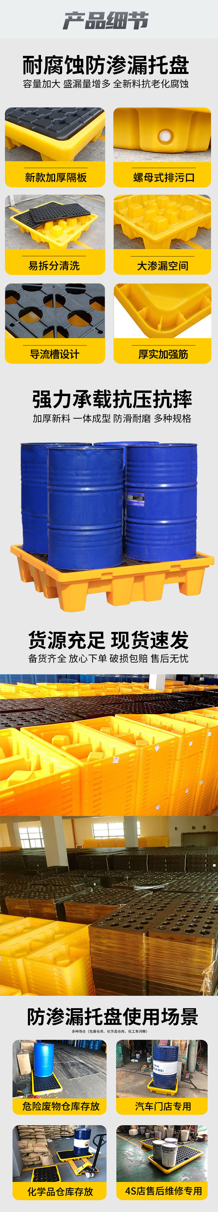 海斯迪克 防渗漏托盘 KC106-2 静载2T 动载0.5T 2#两桶平台(渗漏量80L) 1300*680*150mm 1件