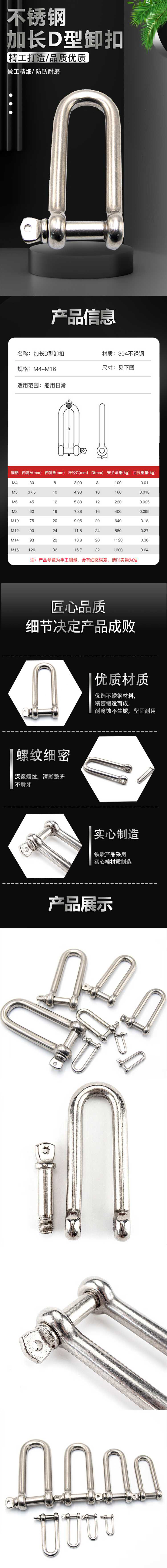 海斯迪克 304不锈钢卸扣 KC108-1 D型扣 M4 1件