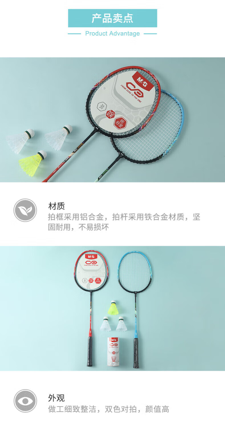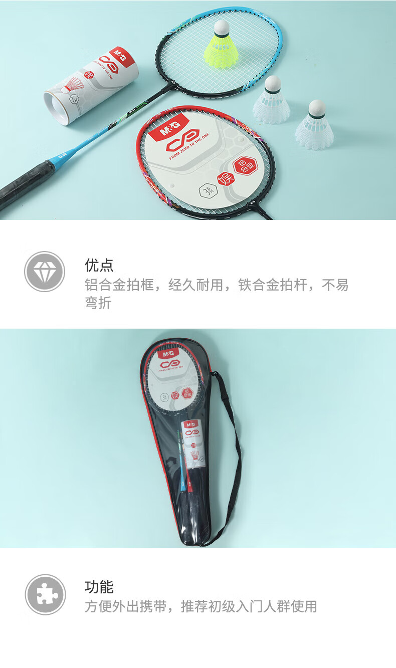 晨光 对拍羽毛球拍 AST09303 铁合金 1套