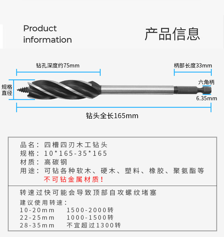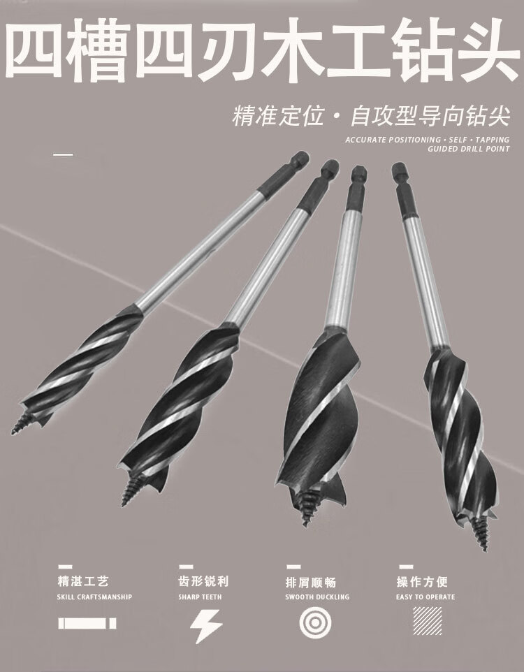 海斯迪克 四刃四槽木工钻头 KK55-13 28*165mm 1个