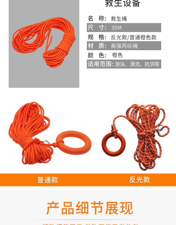 • 规格普通8mm*30m(普通,不带浮环和安全钩)