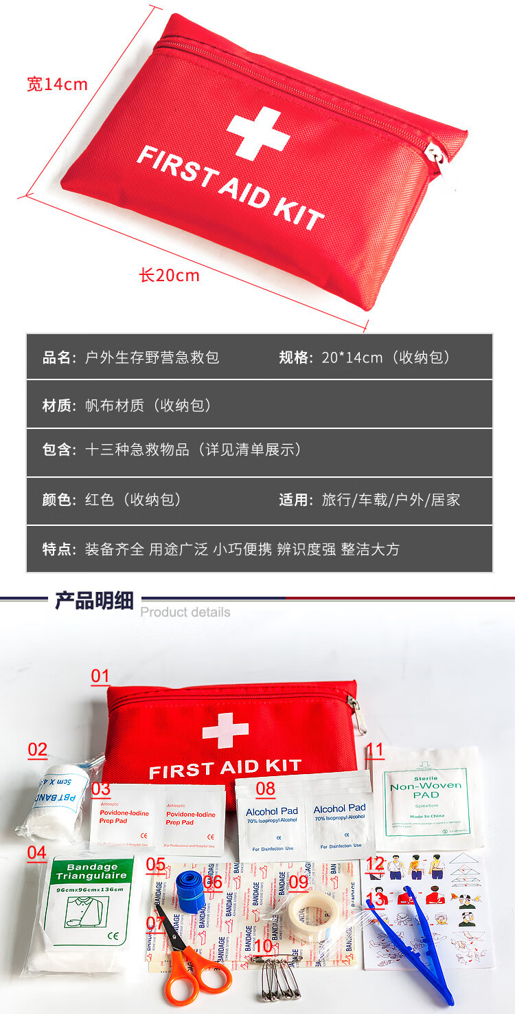 海斯迪克 急救包套装 KA54-1 帆布 20*14cm 12件 1套