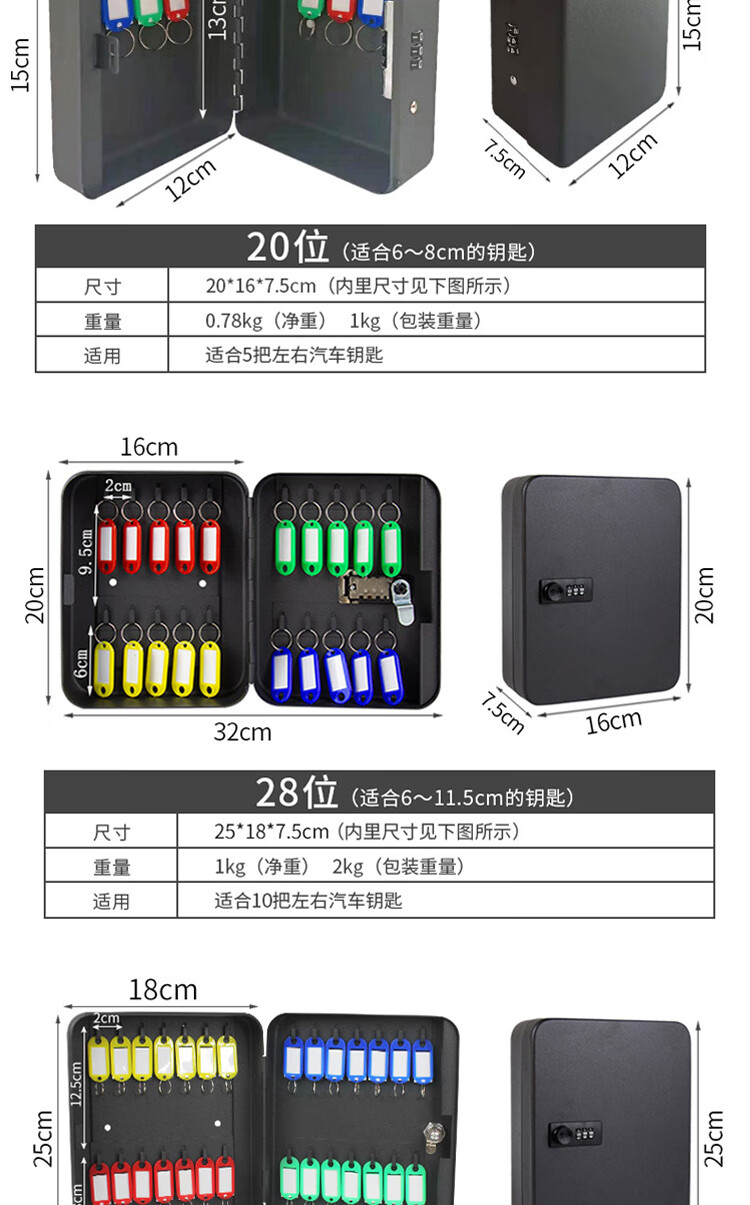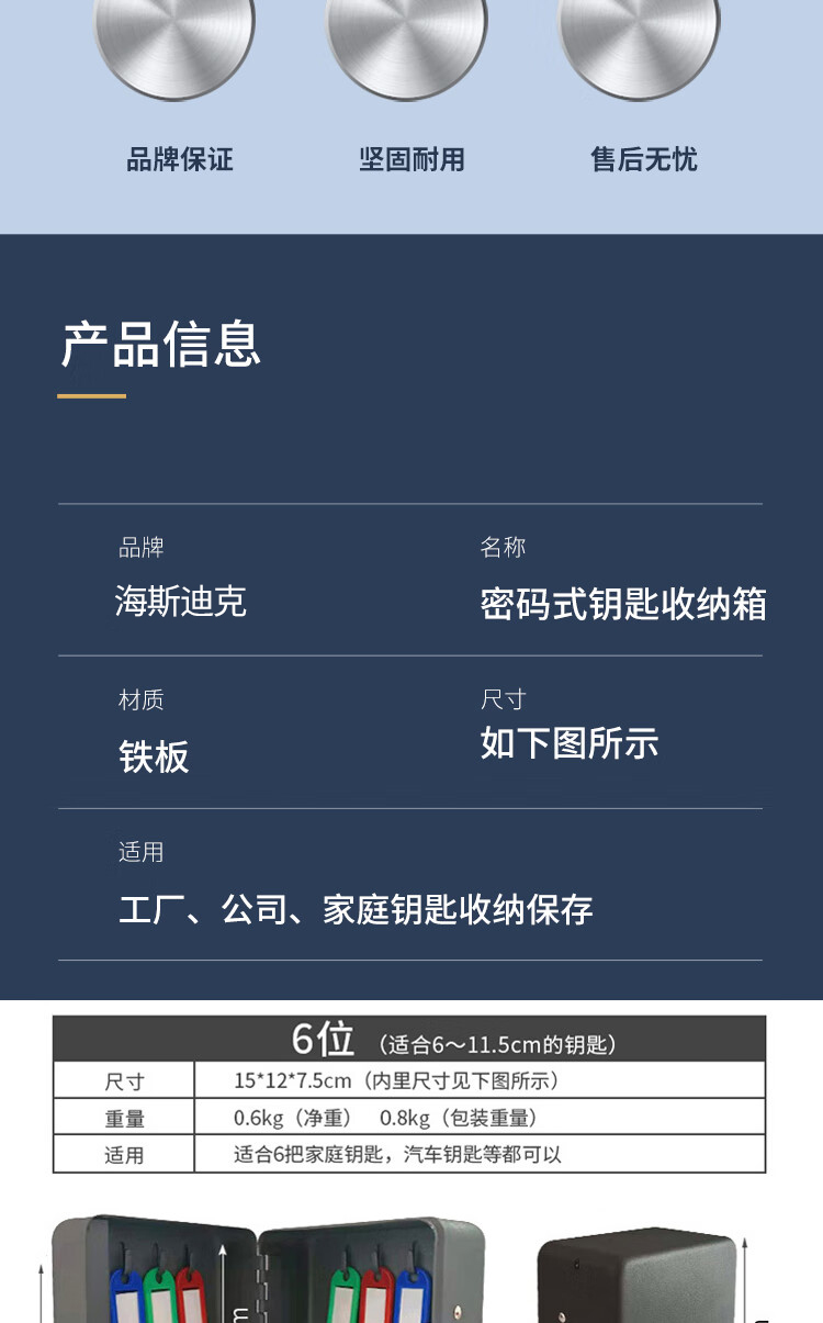 海斯迪克 密码钥匙箱 KA55-1 铁板 6挂15*12*8cm 1个