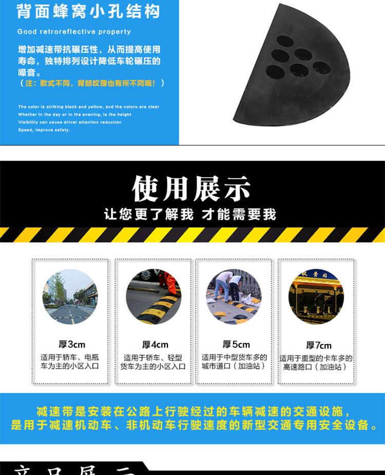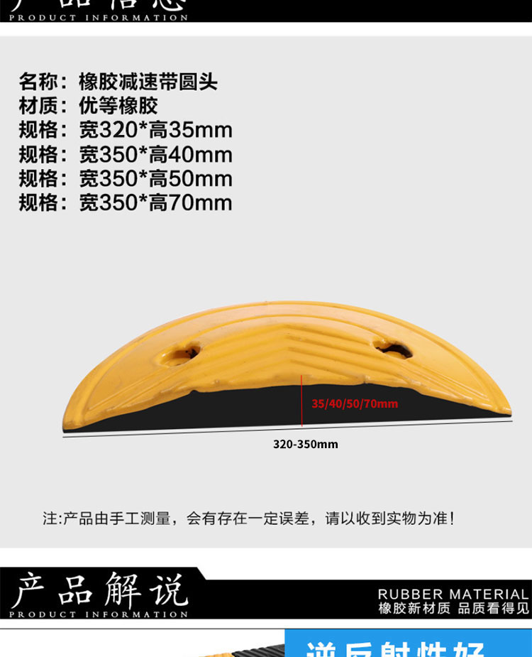 海斯迪克 减速带 KA56-5 橡胶 32*3.5cm半圆头 2个 1对