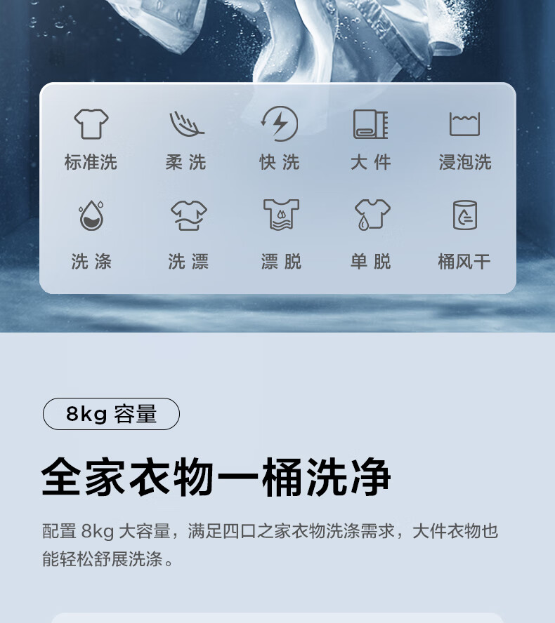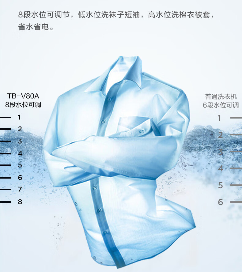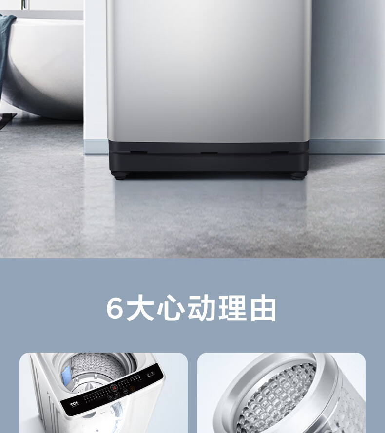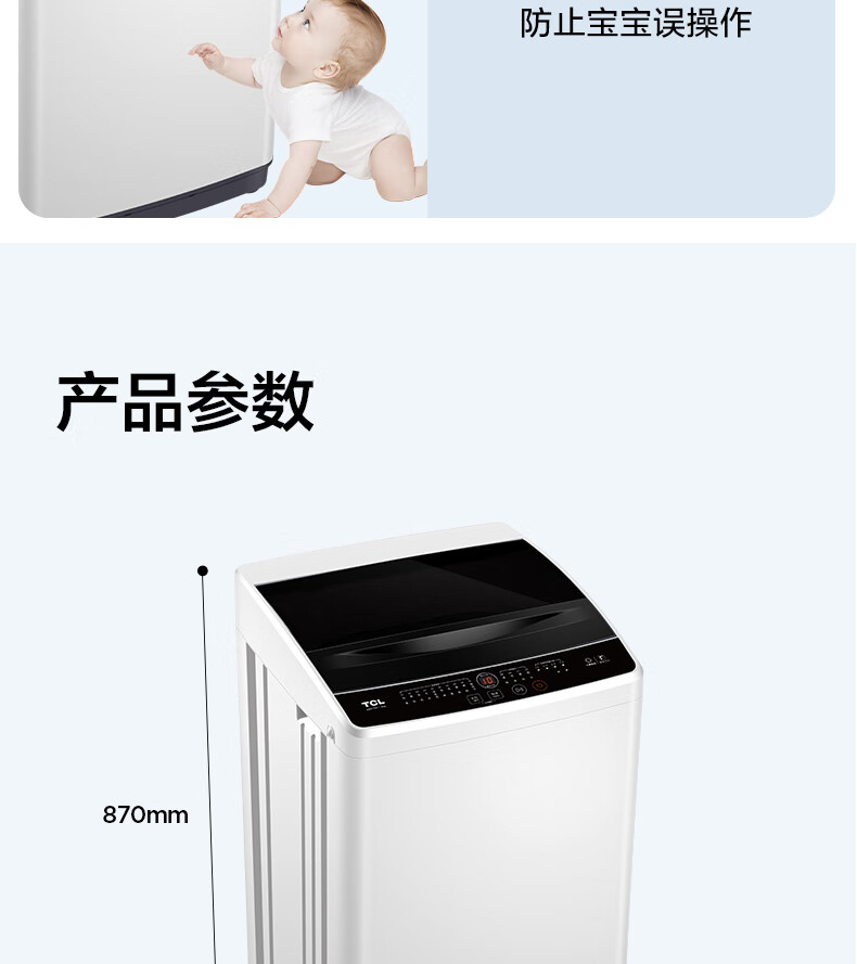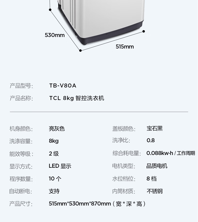 TCL 全自动波轮洗衣机 TB-V80A 亮灰色 8Kg 1台