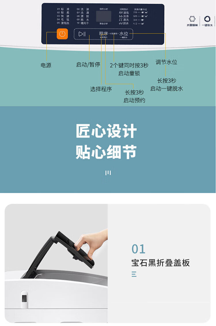 TCL 全自动小体积波轮洗衣机 B100F1C 2级能效 10Kg 1台