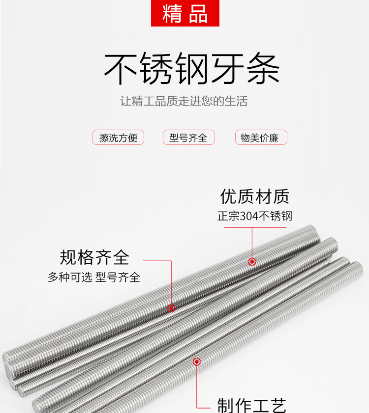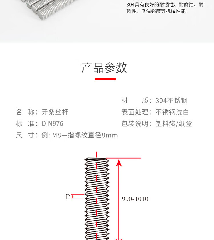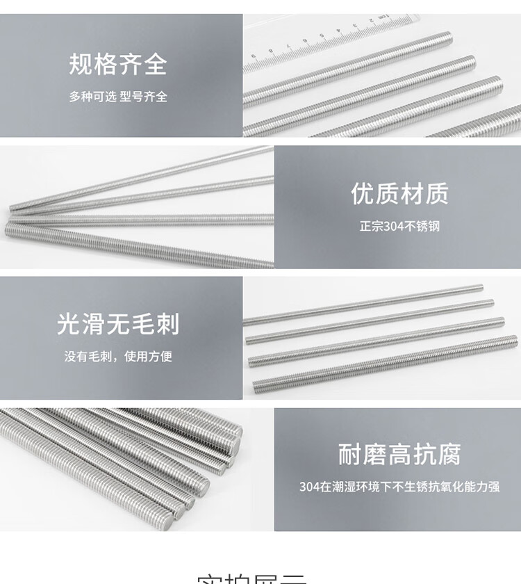 海斯迪克 304不锈钢丝杆牙条 KJ44-10 DIN976 全牙 本色 M16*1米 1根