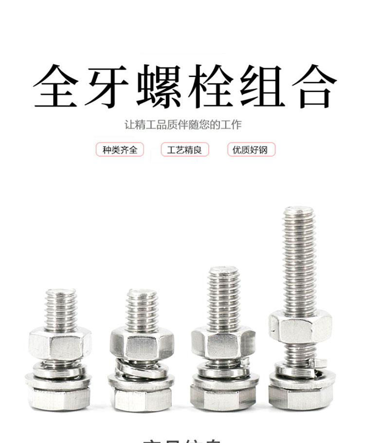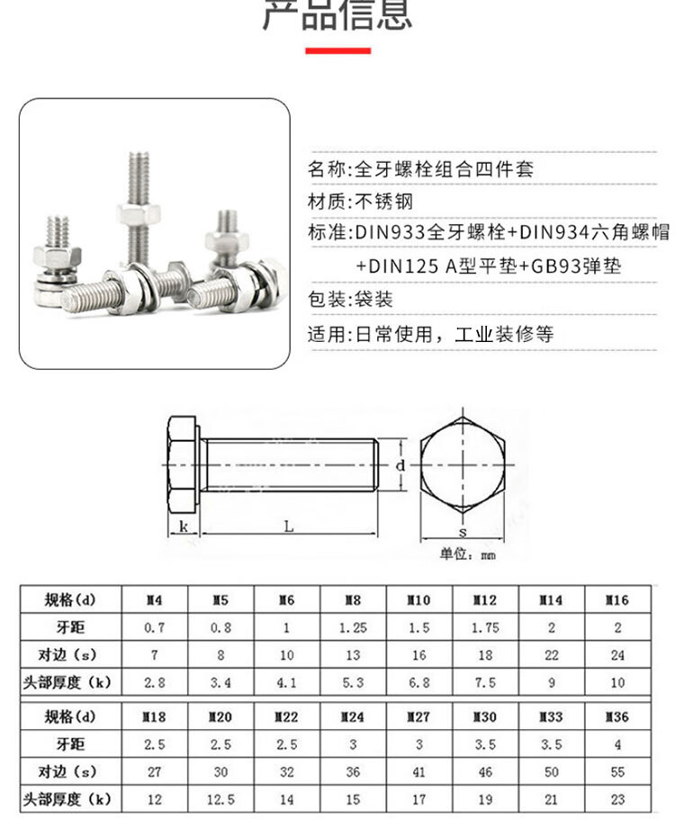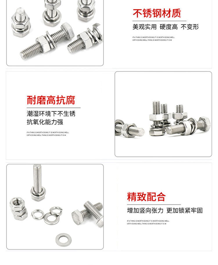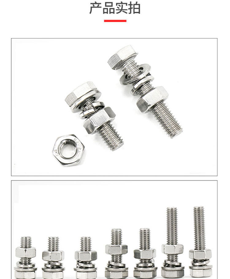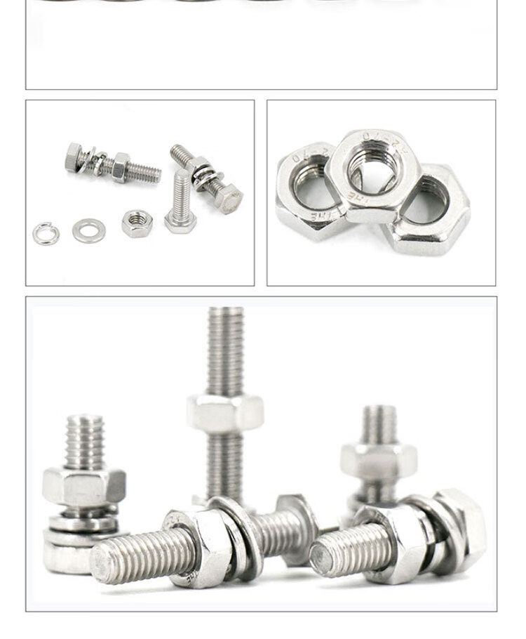 海斯迪克 304不锈钢外六角螺丝螺母平垫弹垫四件套 KJ46-12 DIN933 本色 M3*35 50套 1包